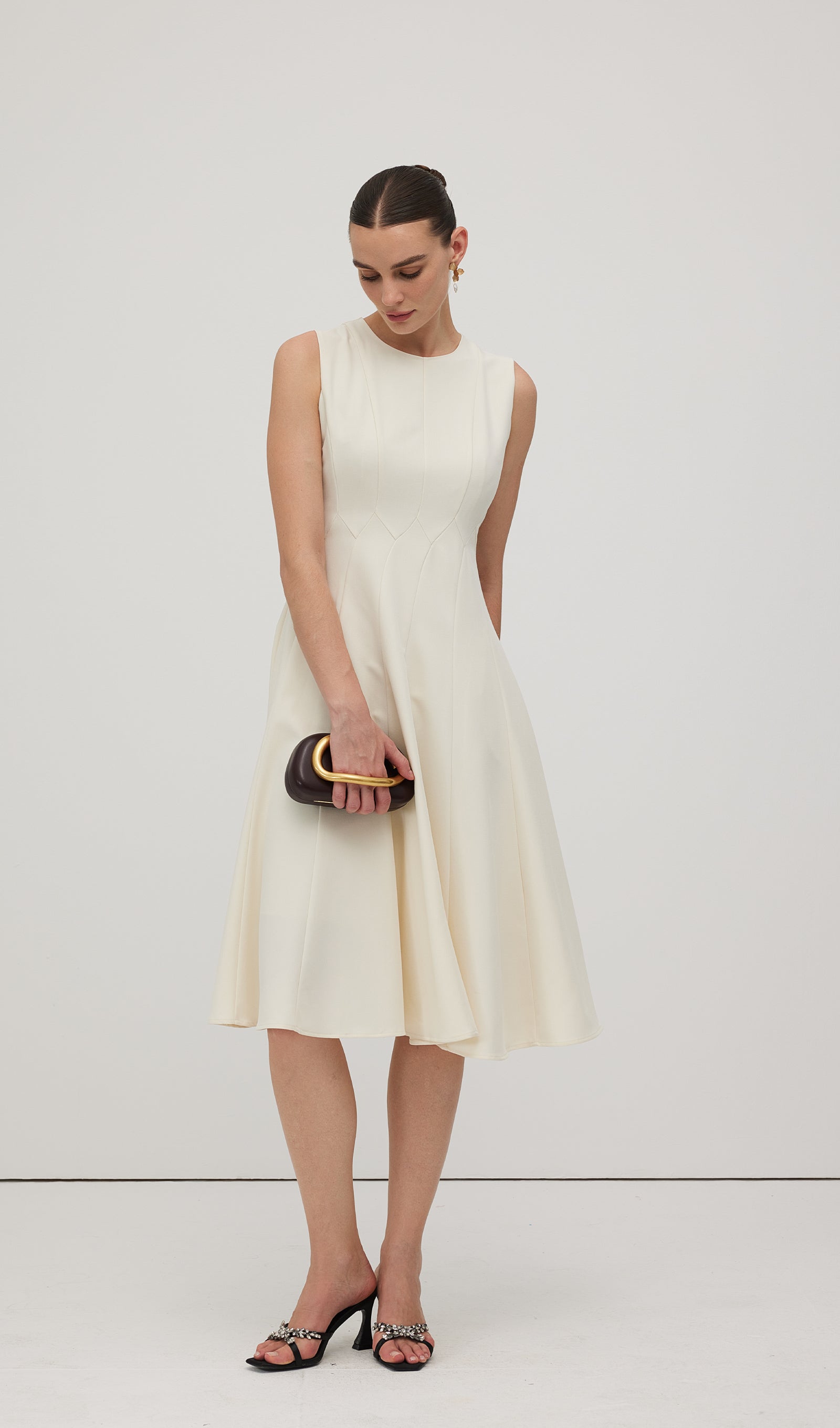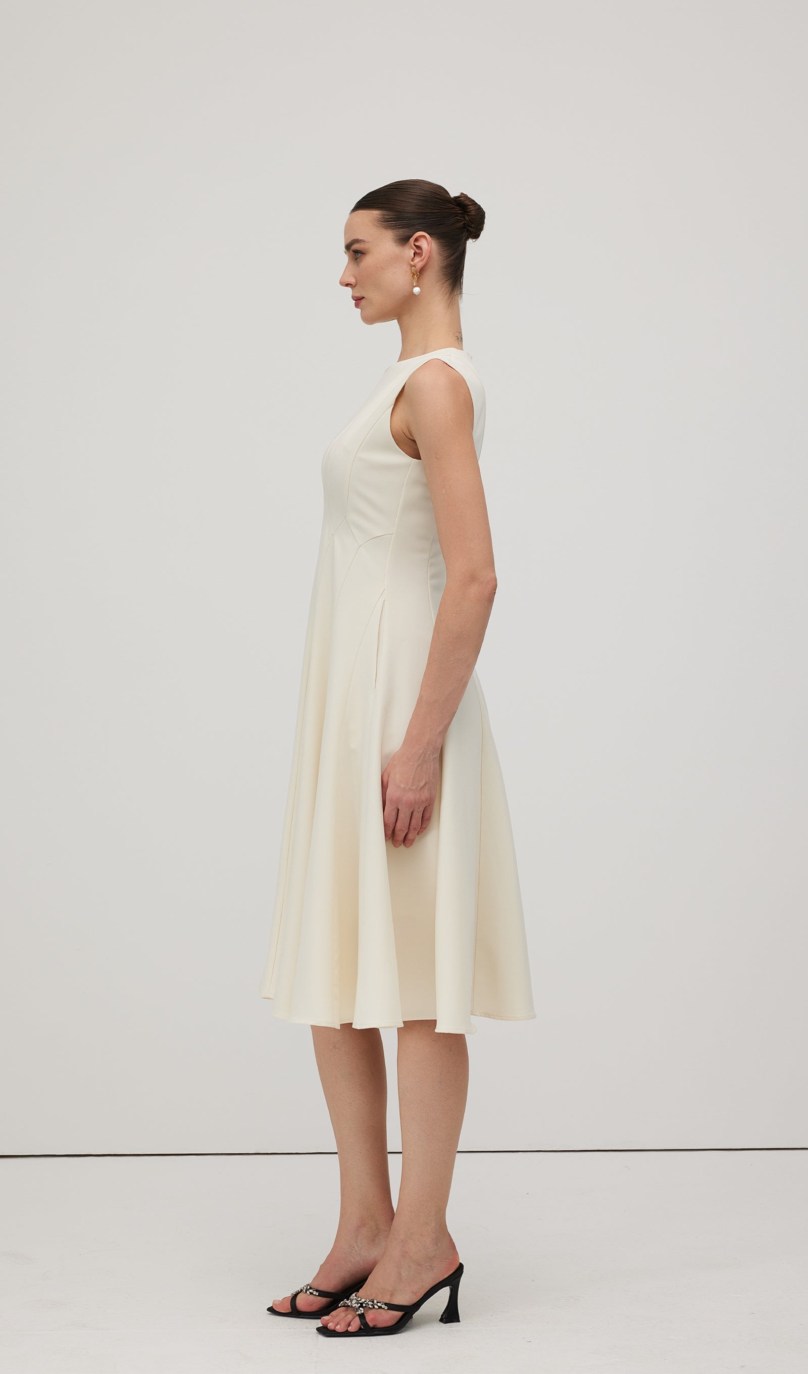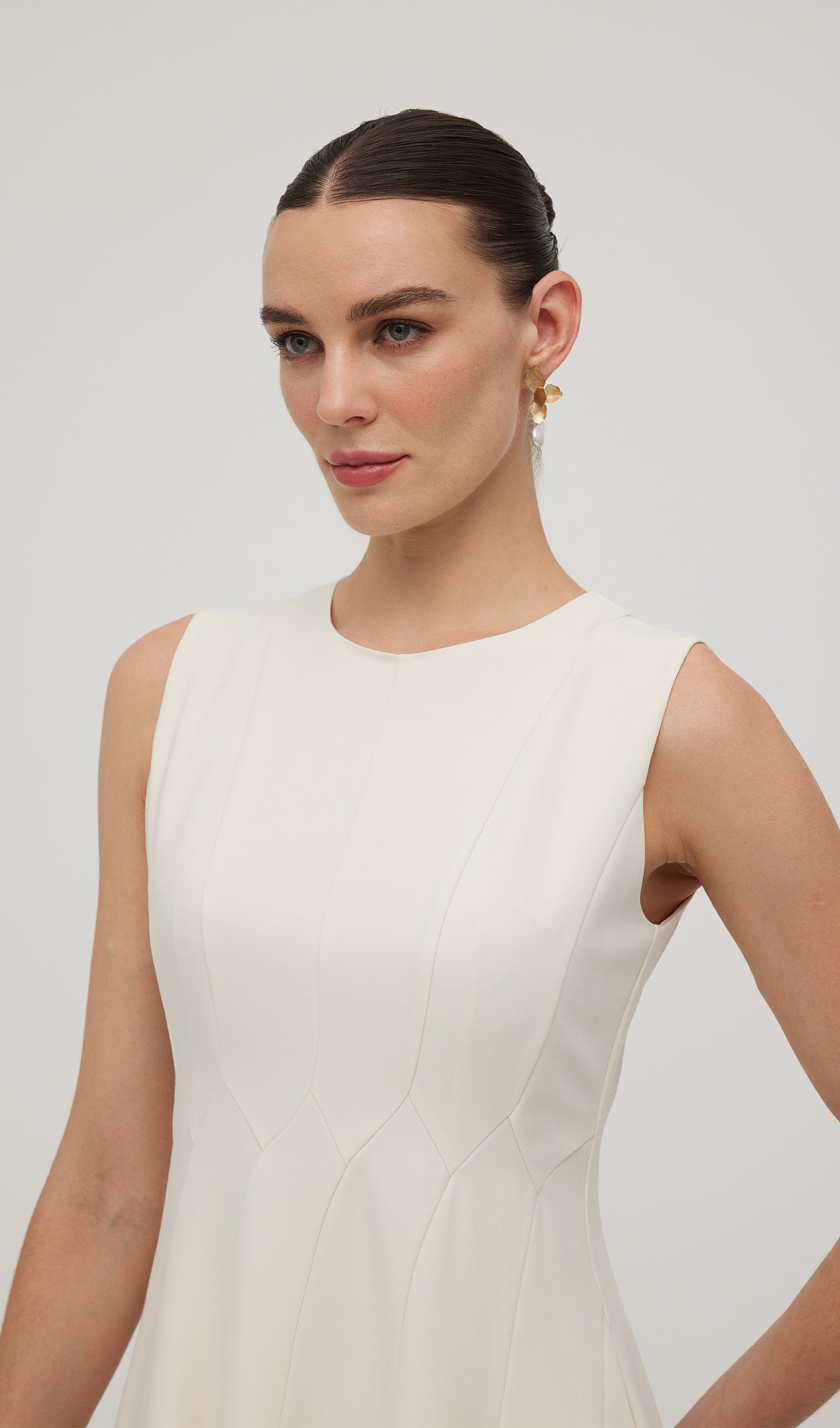 A silhouette that needs no introduction, QW's A-line dress feels like a sophisticated whisper rather than a loud statement. Seemingly simple, this sleeveless midi dress is rooted in considered craftsmanship - consider its crease-resistant Japanese crepe or the volume-enhancing seams, ensuring that the design both wears and ages beautifully.