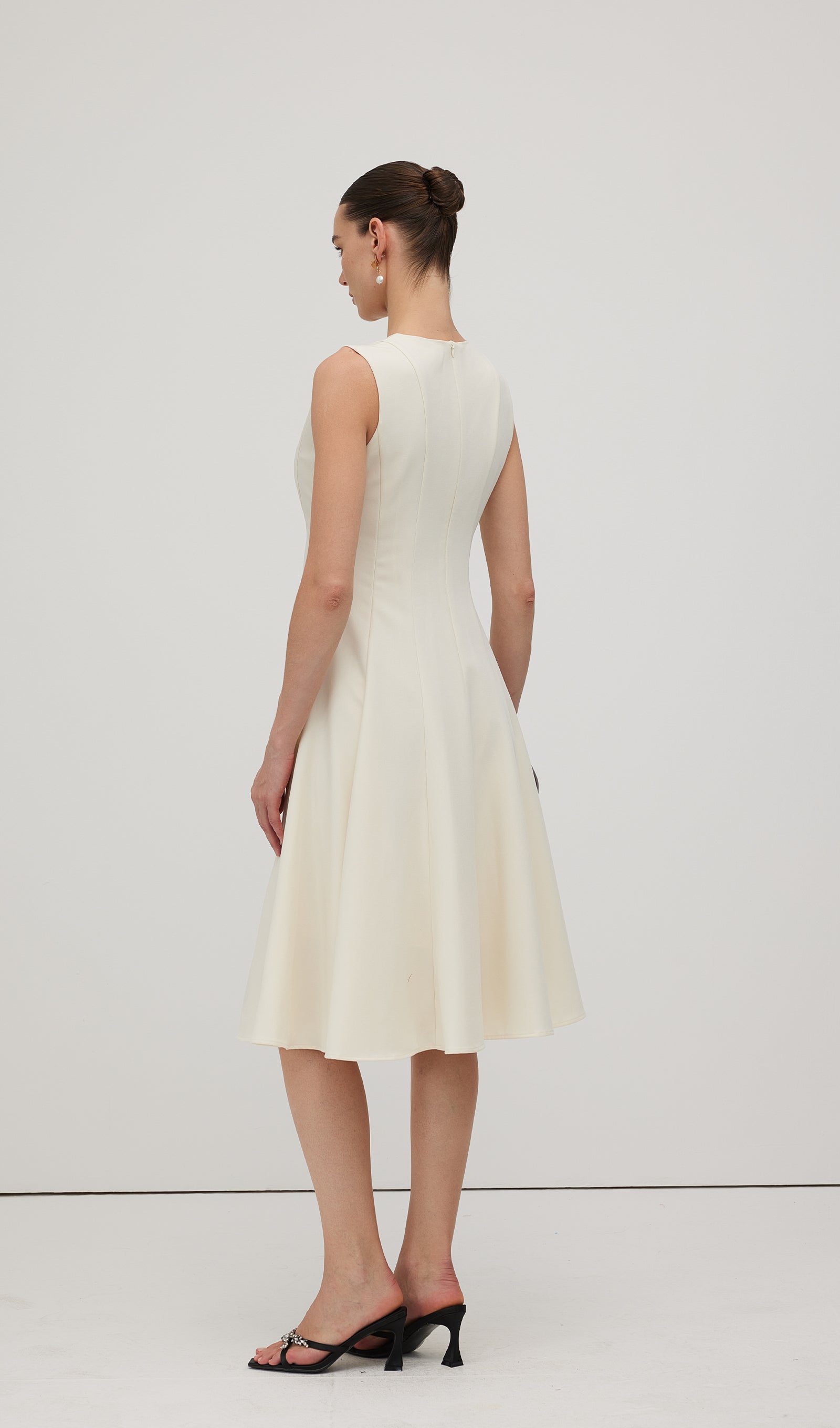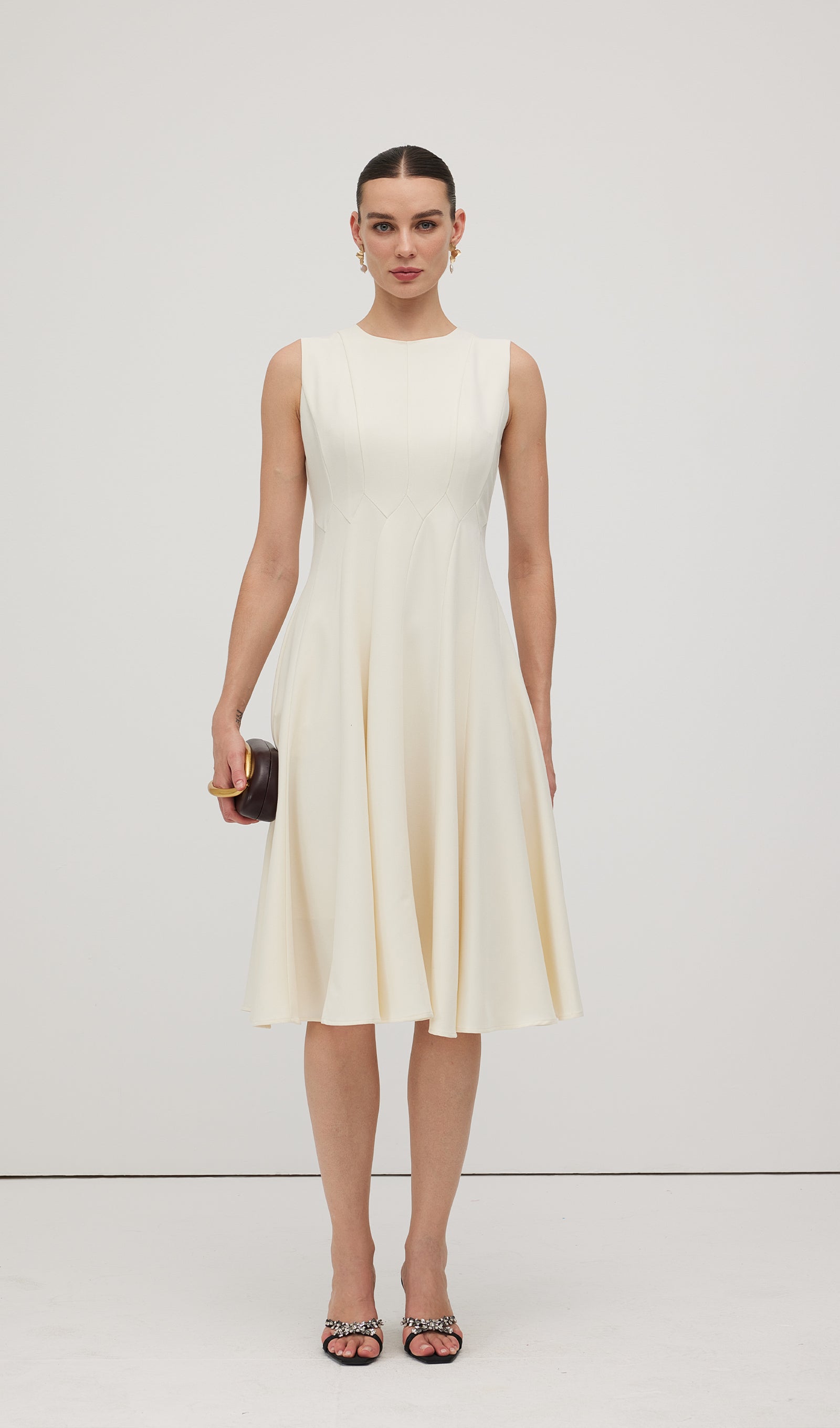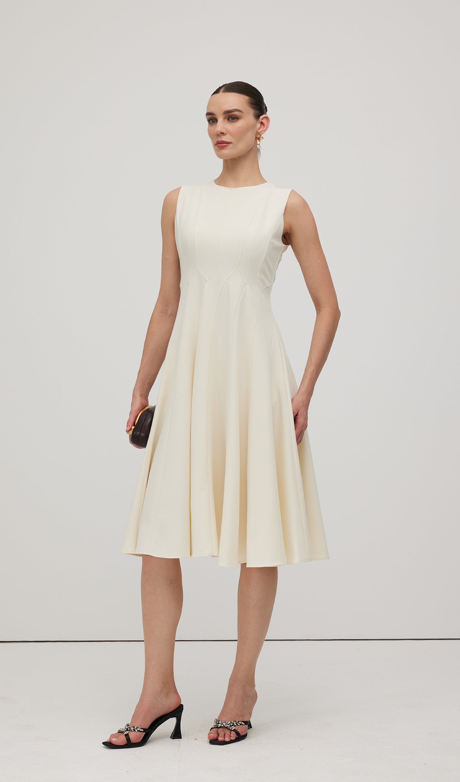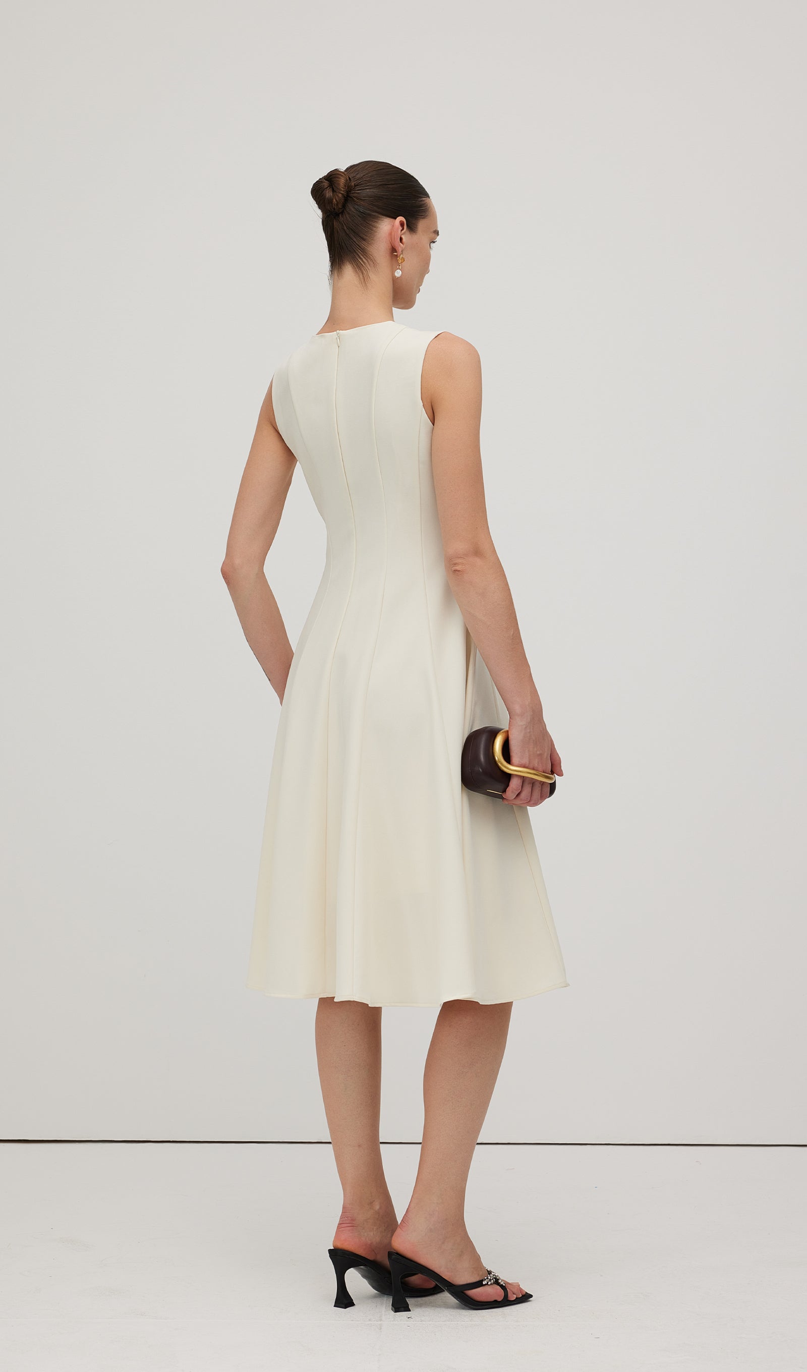 A silhouette that needs no introduction, QW's A-line dress feels like a sophisticated whisper rather than a loud statement. Seemingly simple, this sleeveless midi dress is rooted in considered craftsmanship - consider its crease-resistant Japanese crepe or the volume-enhancing seams, ensuring that the design both wears and ages beautifully.