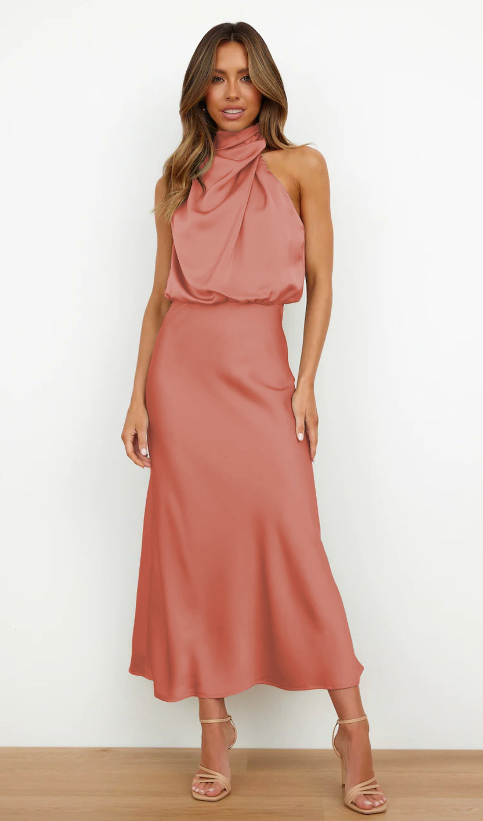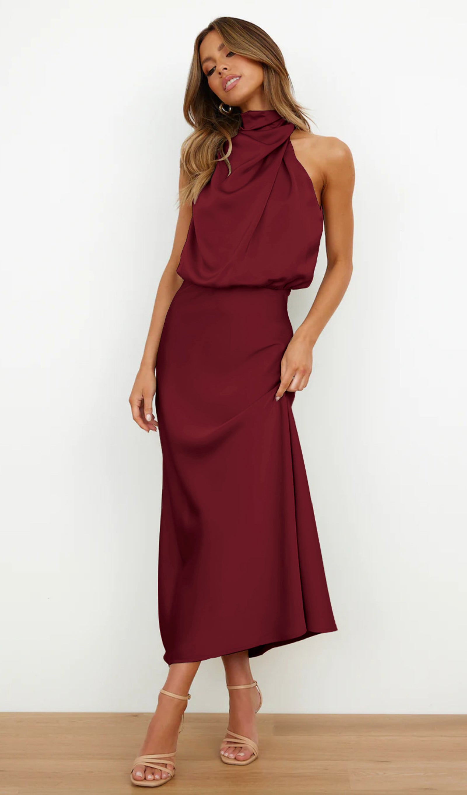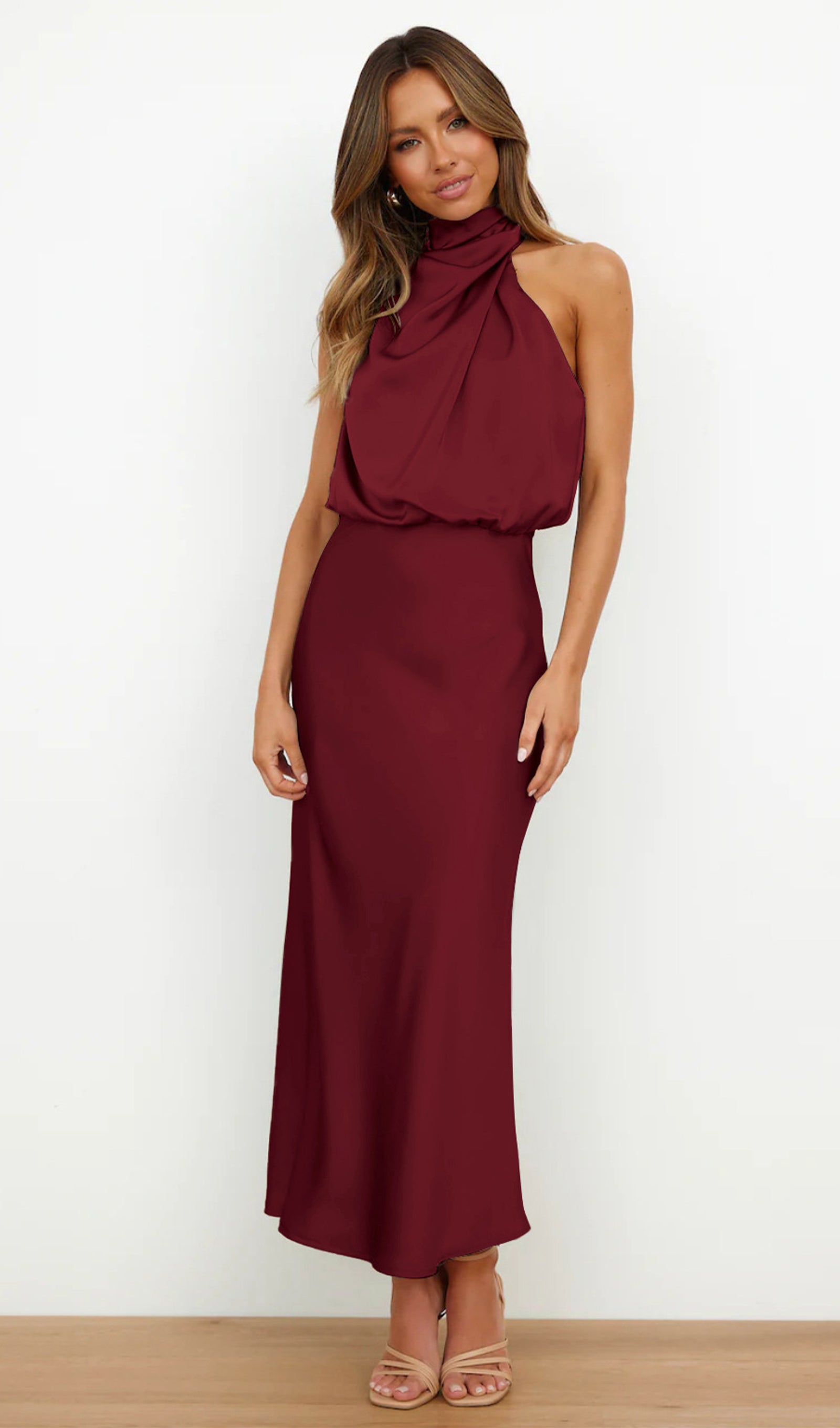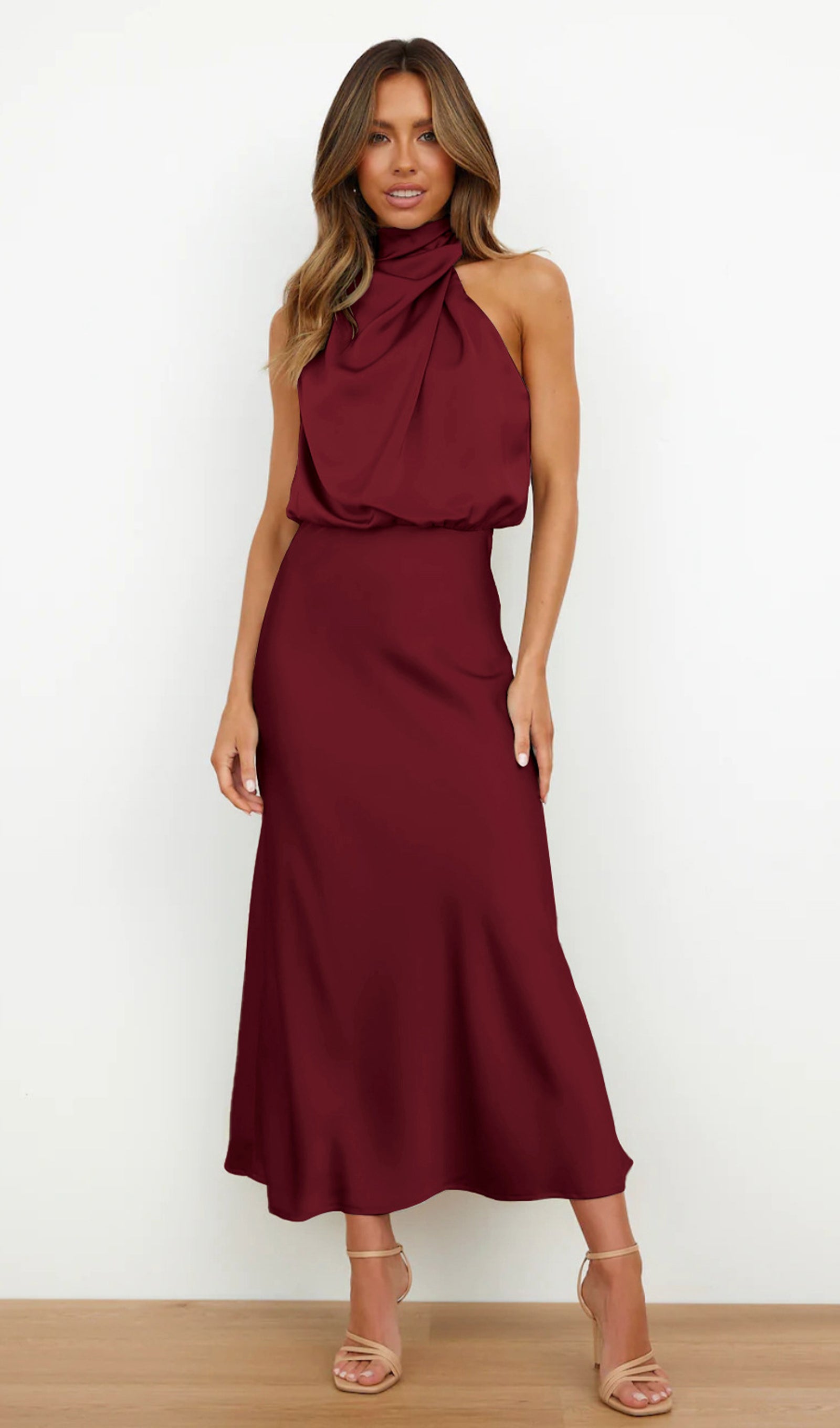 Halter Neck Spaghetti Strap Backless Chiffon Dress