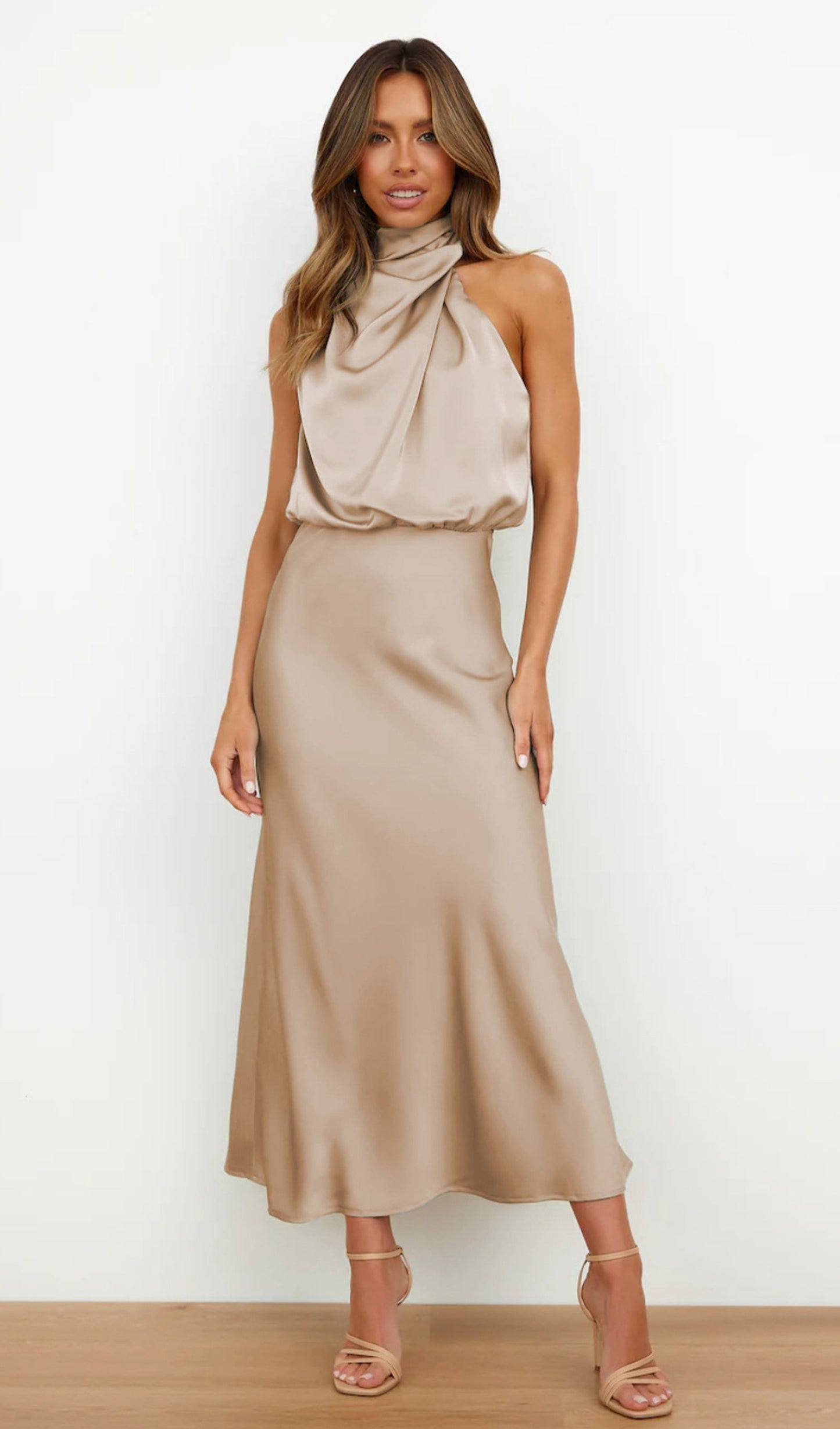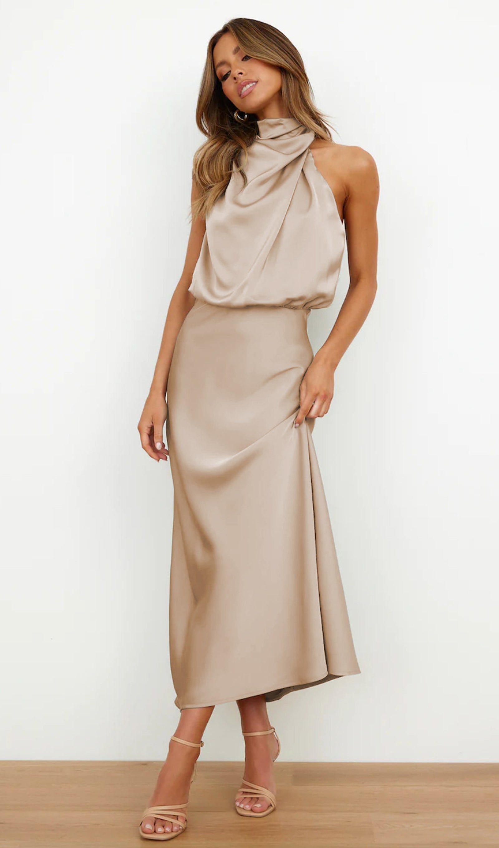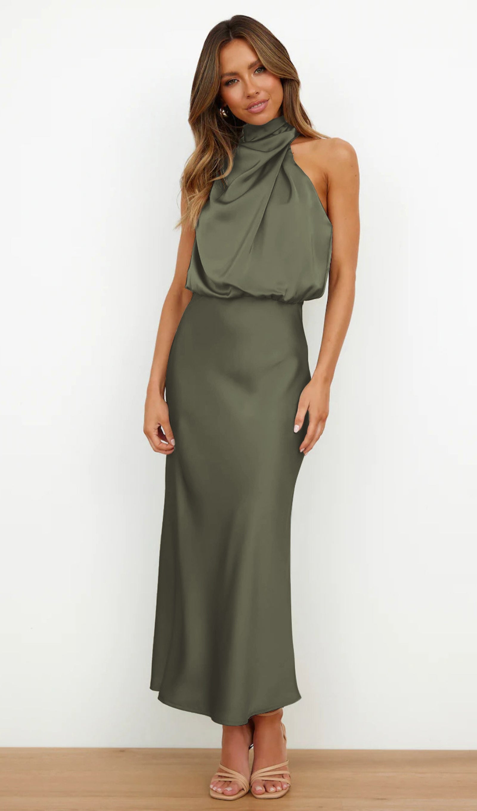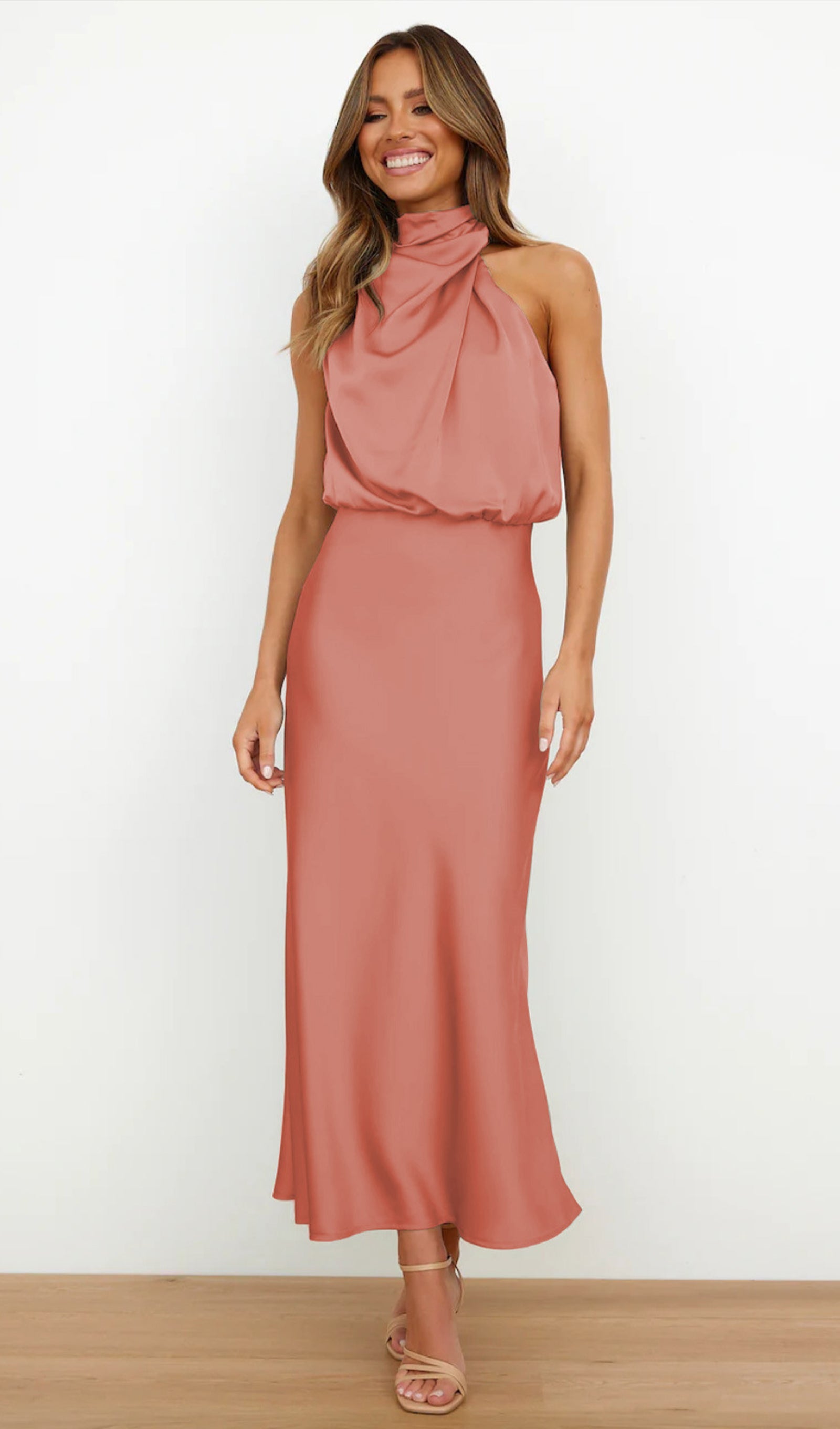 Halter Neck Spaghetti Strap Backless Chiffon Dress