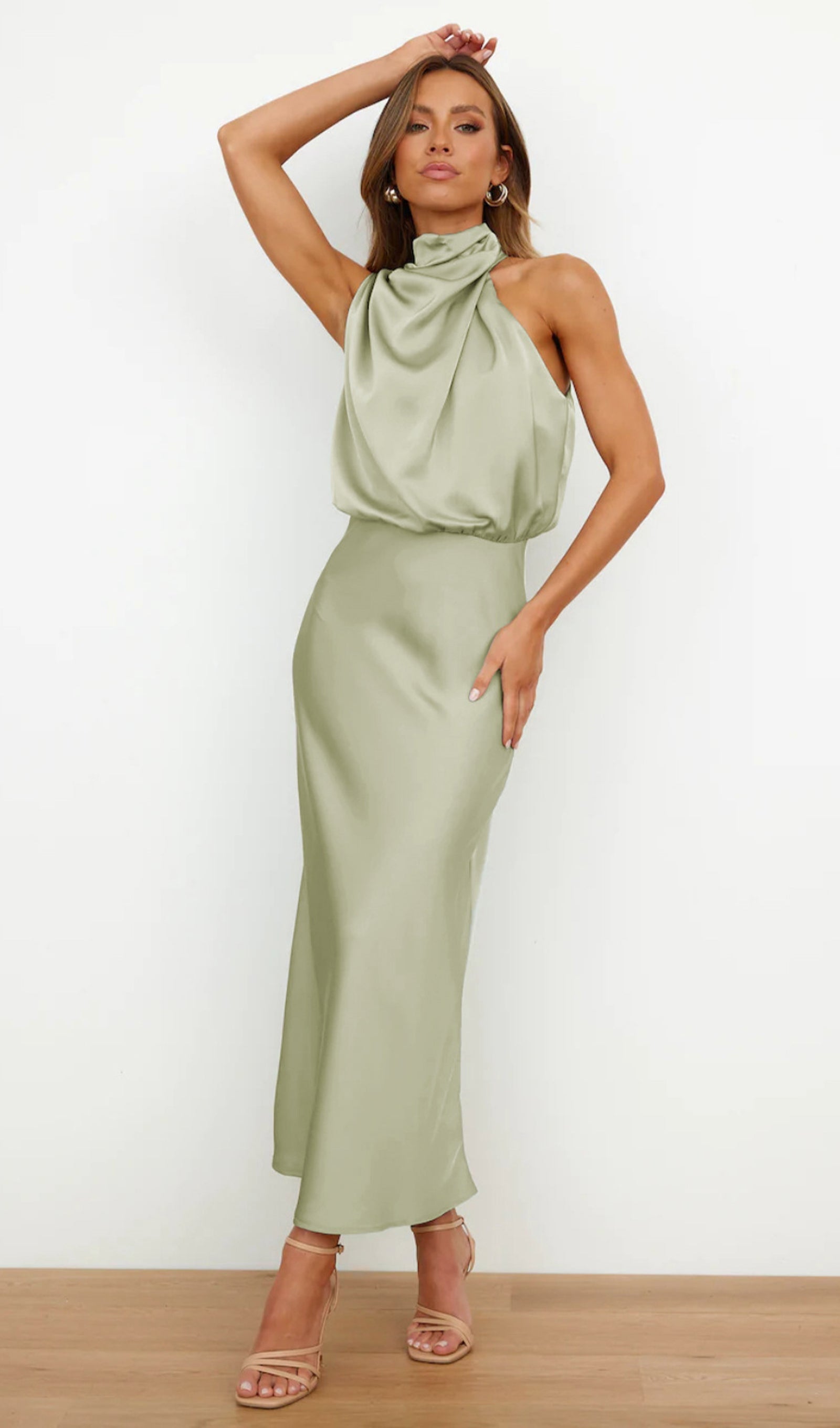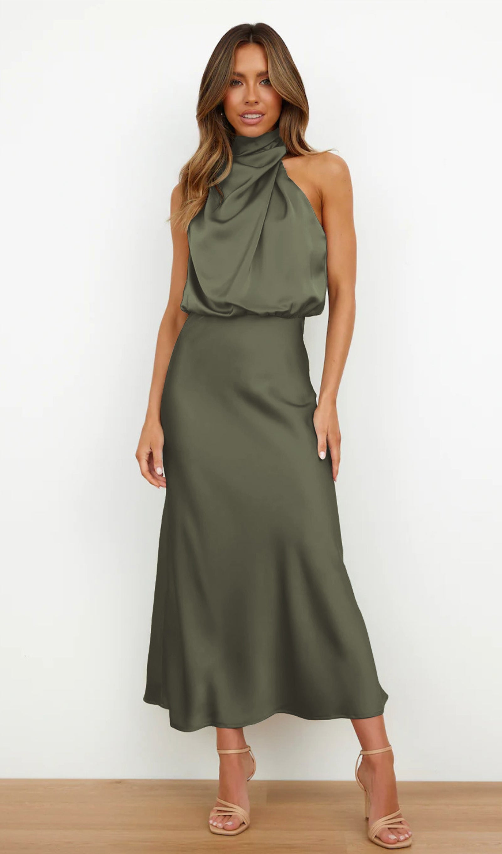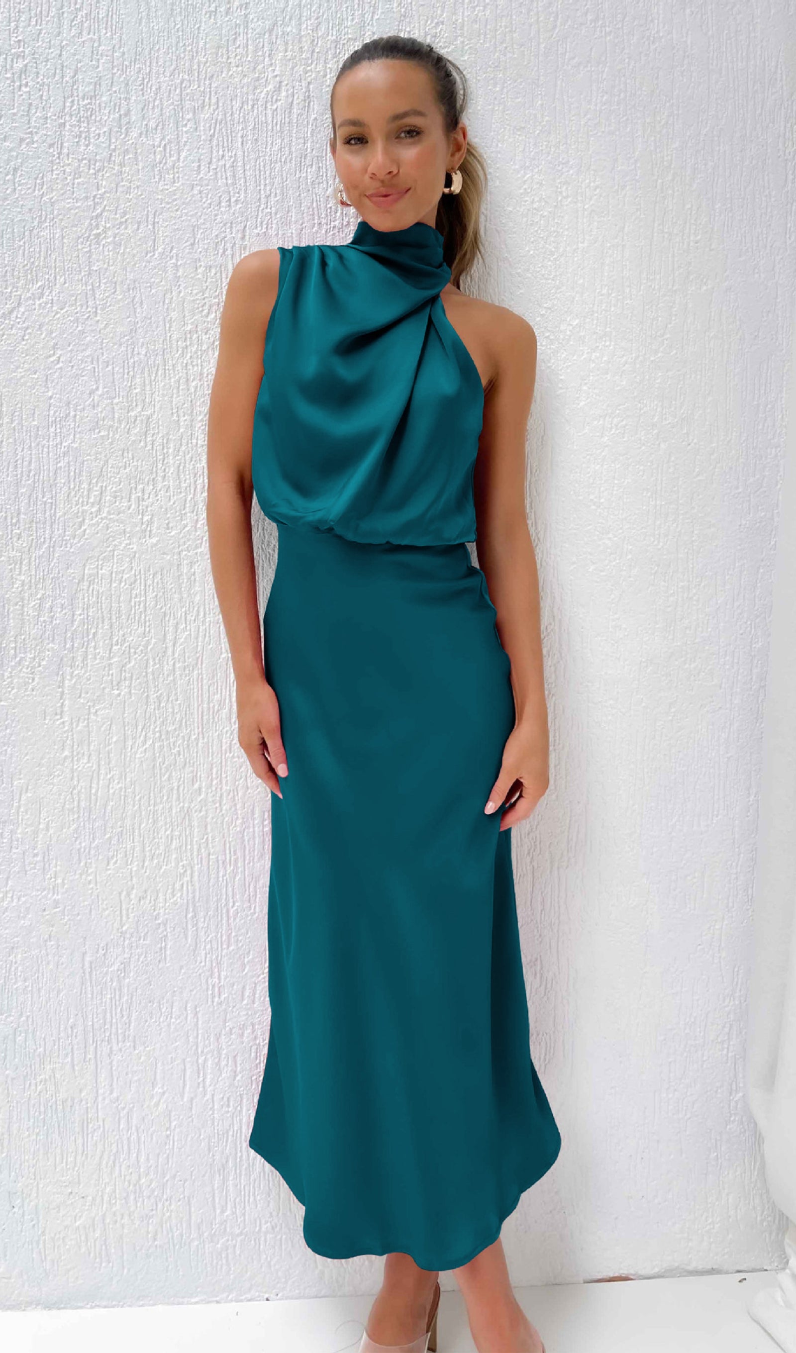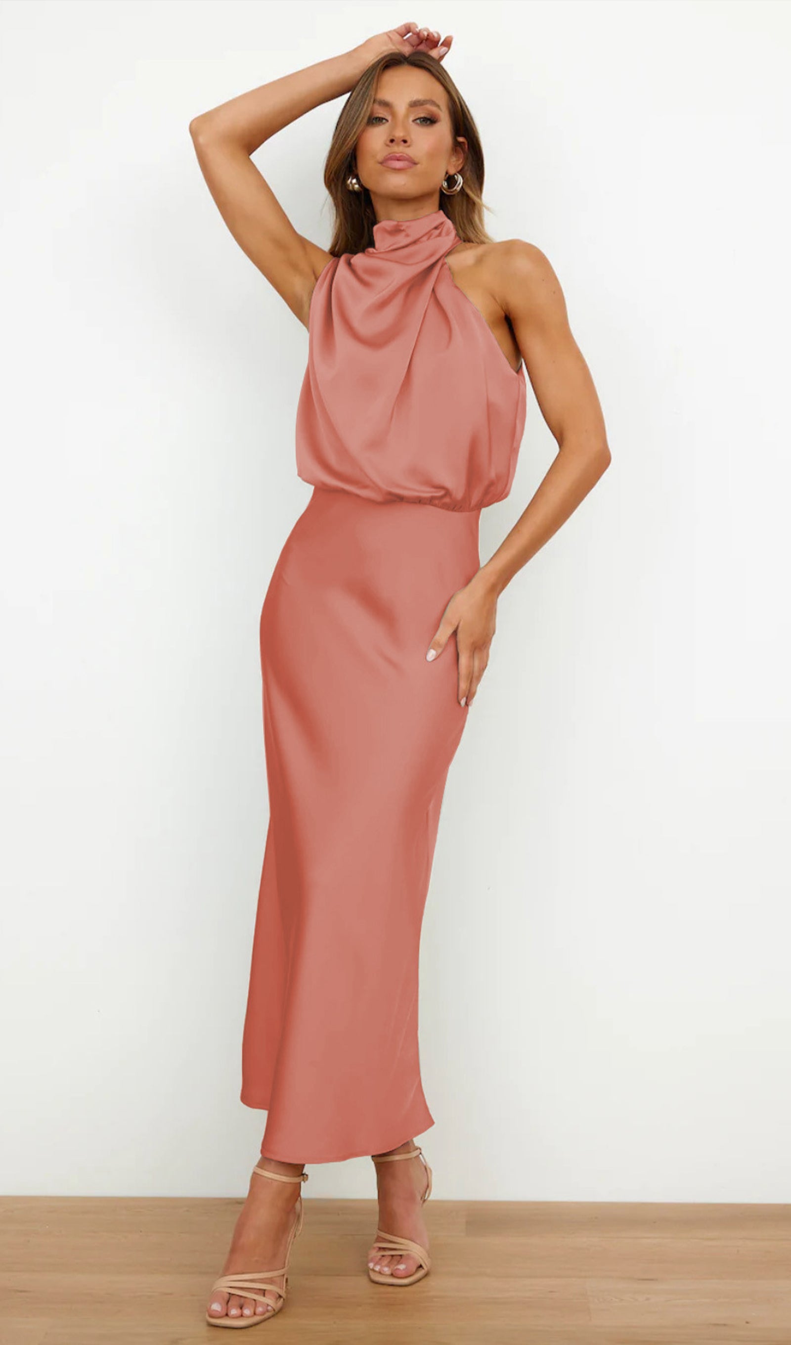Halter Neck Spaghetti Strap Backless Chiffon Dress