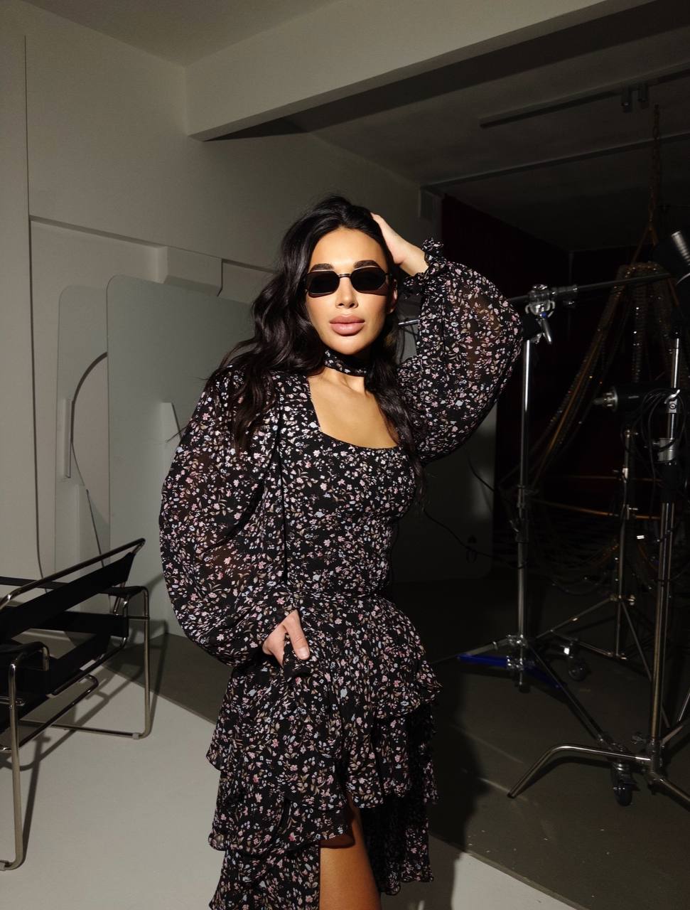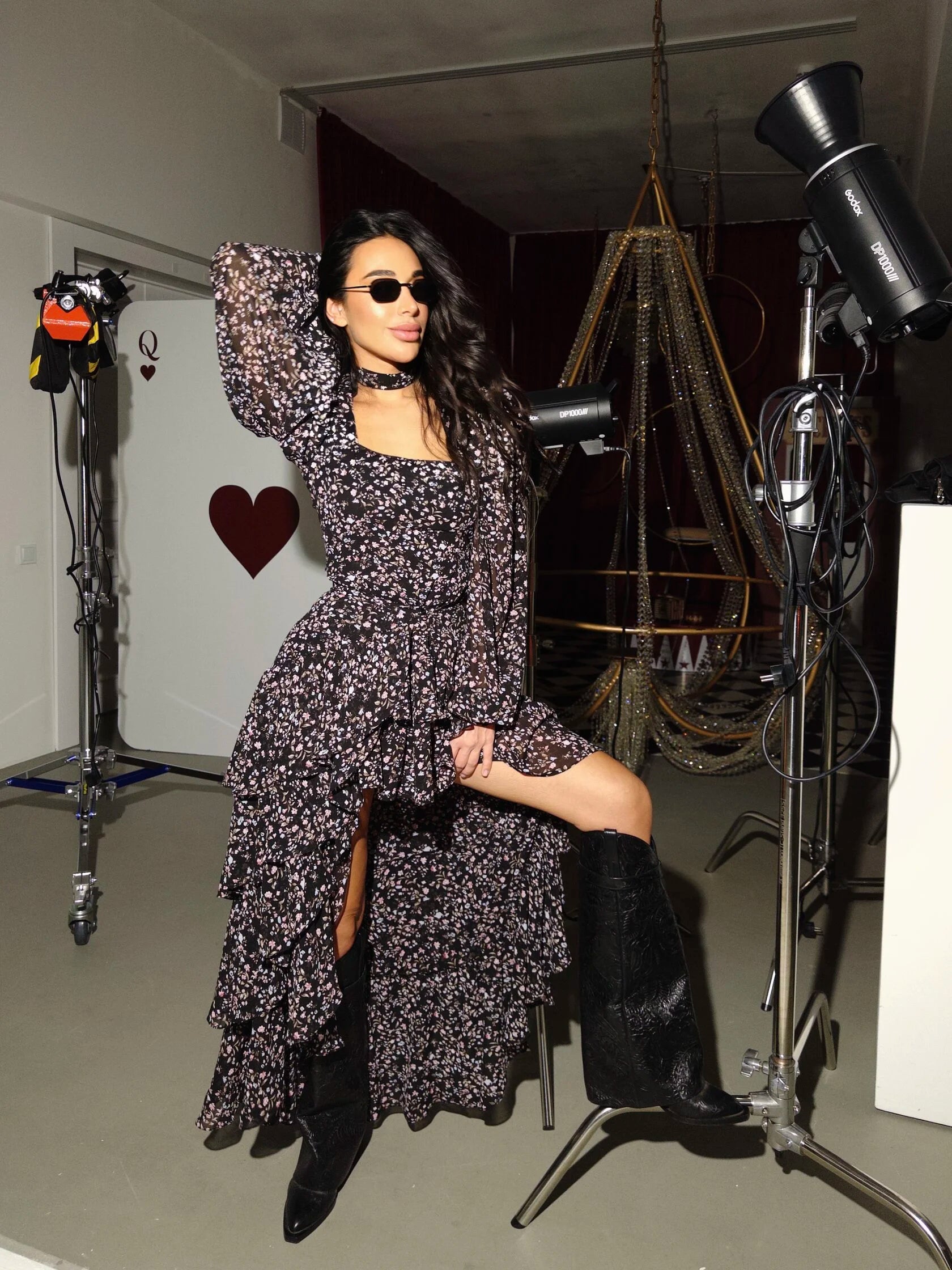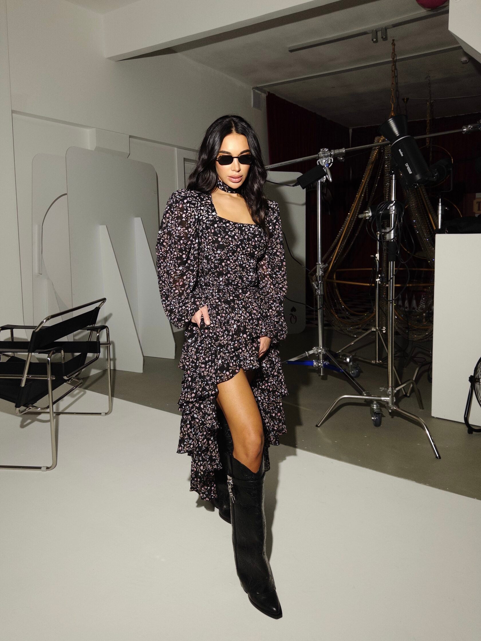 In addition to the dress there is an airy peplum. It is a removable element of the dress.