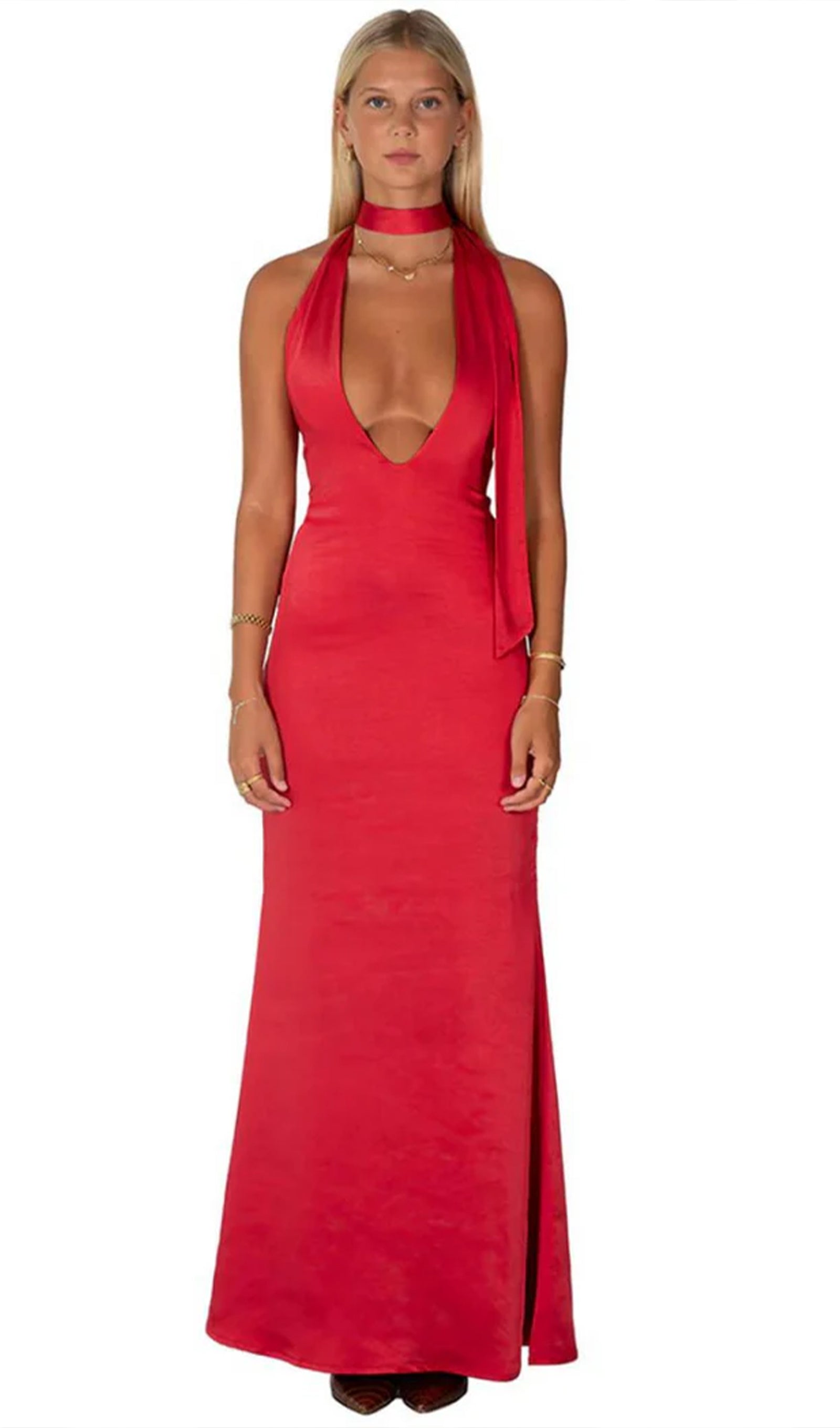 Make a grand entrance in the Satin Maxi. Embodying effortless allure, this ultra-seductive and flattering dress features a deluxe satin fabric that cinches your waist. The flowing maxi dress, crafted from lightweight satin, delicately cascades as you move. Complete with a seductive low neckline for added drama, the Satin Maxi is perfect for romantic evenings and elegant events.