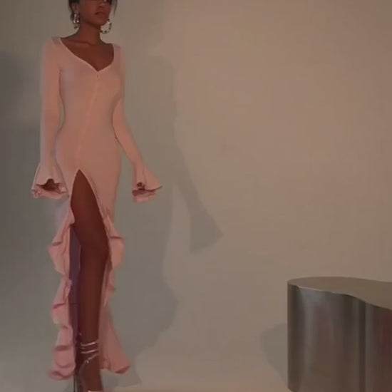 Sweetheart Neckline Long Sleeves Ruffled Cuffs Dress