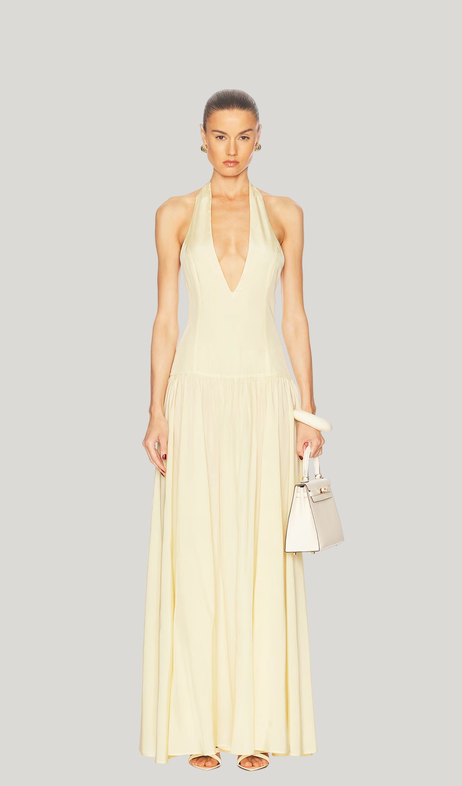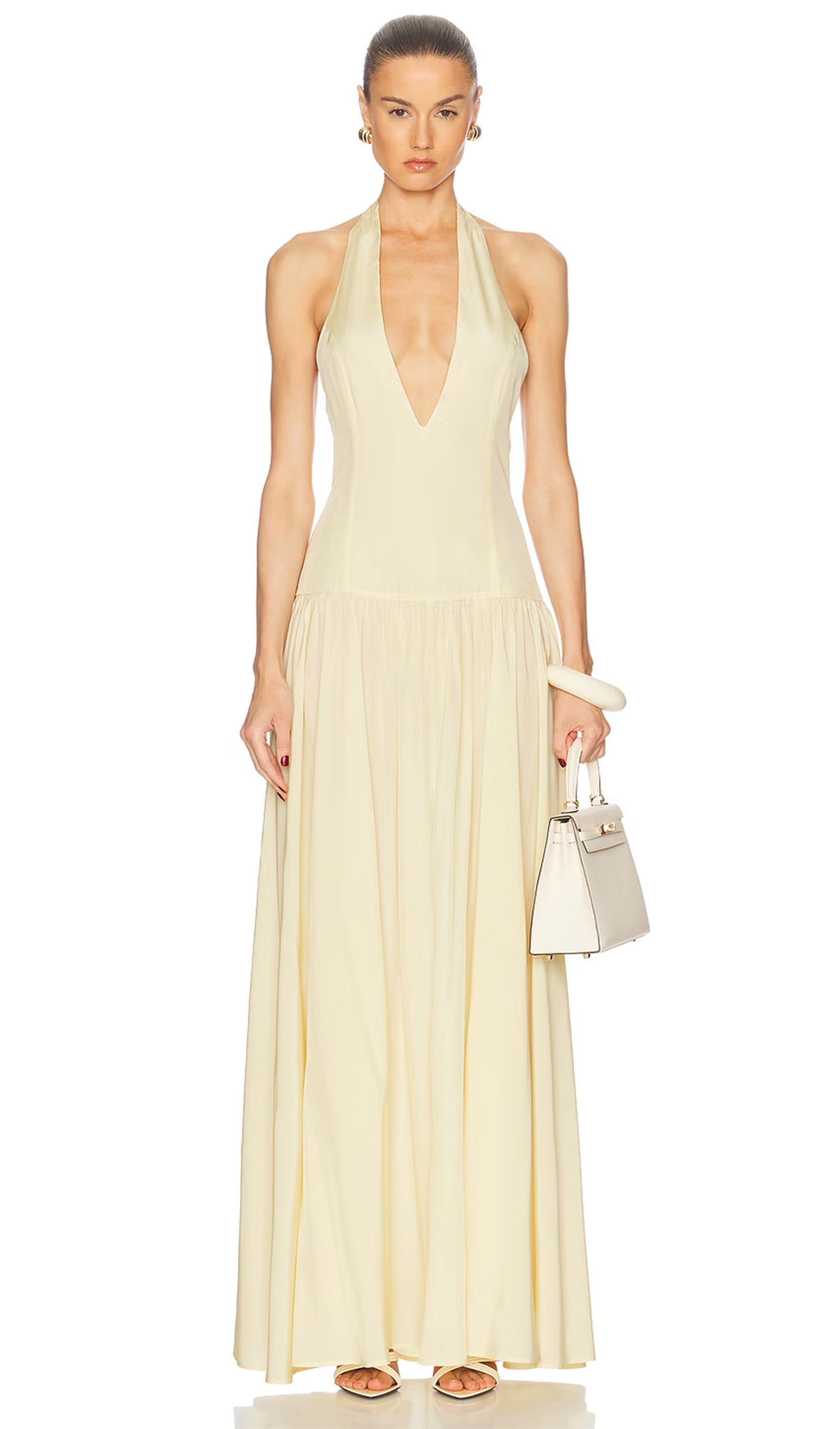 This halter v neck maxi dress is an elegant and comfortable addition to any wardrobe. The halter neckline offers a flattering look, while the flowy maxi length provides a versatile style that can be dressed up or down. Perfect for any occasion, this dress is a must-have for those who appreciate both style and comfort.