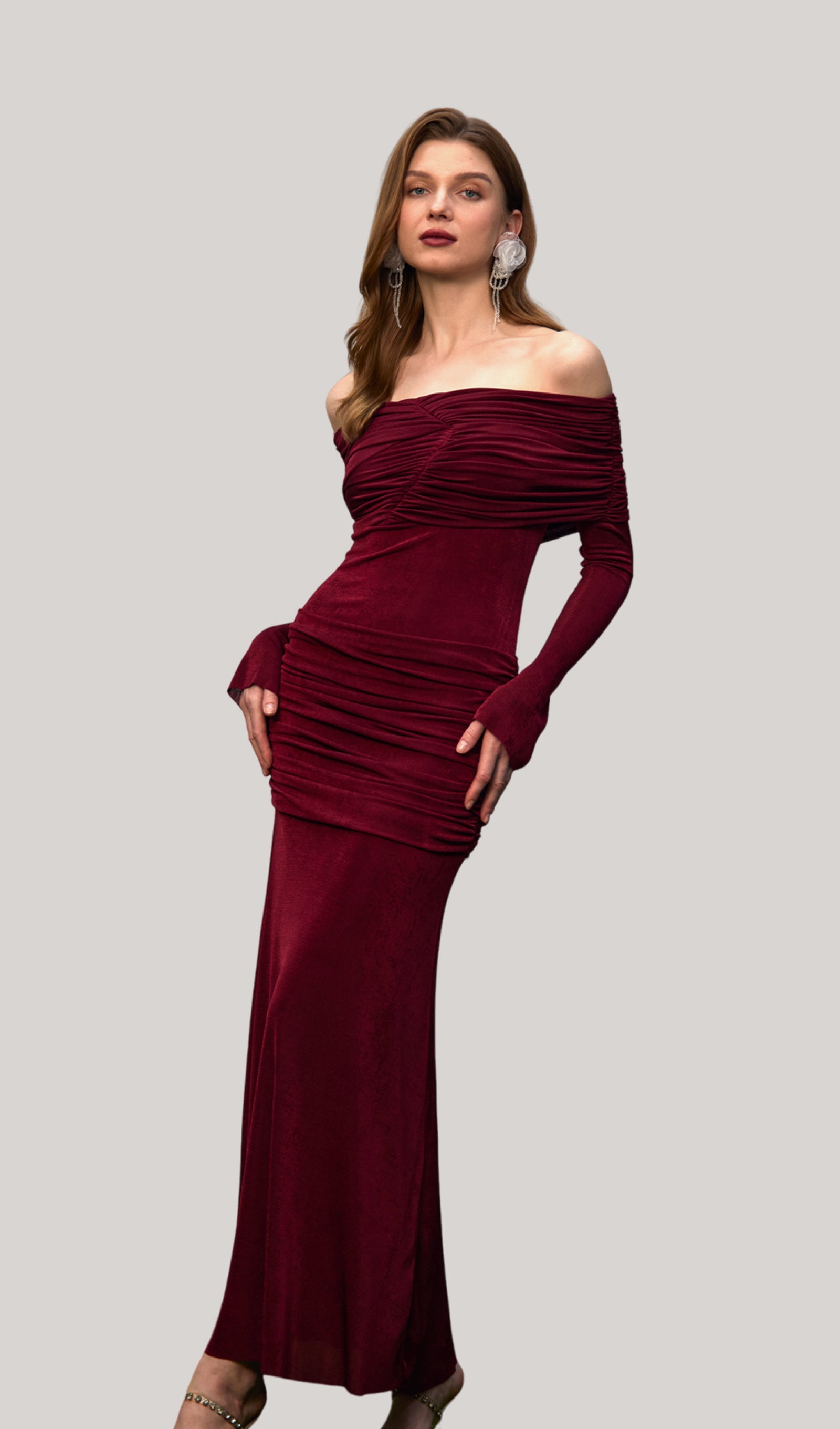The Dress is a bold and elegant off-shoulder piece designed to make a statement. Crafted from single jersey knit, it features draped details that create a flowing and flattering silhouette, exuding modern sophistication. The vibrant red hue adds a touch of drama and allure, making it perfect for standout occasions. The off-shoulder design enhances its femininity, while the soft jersey knit ensures comfort and effortless wear.