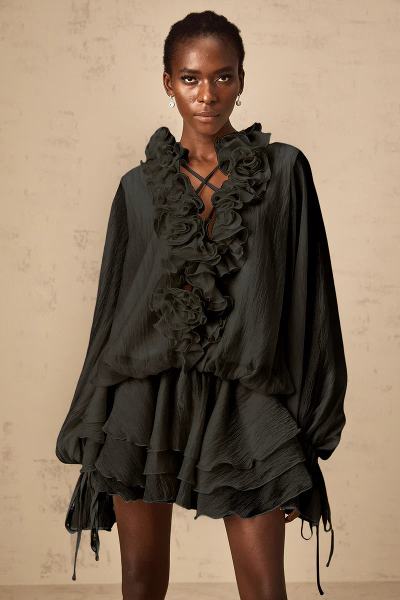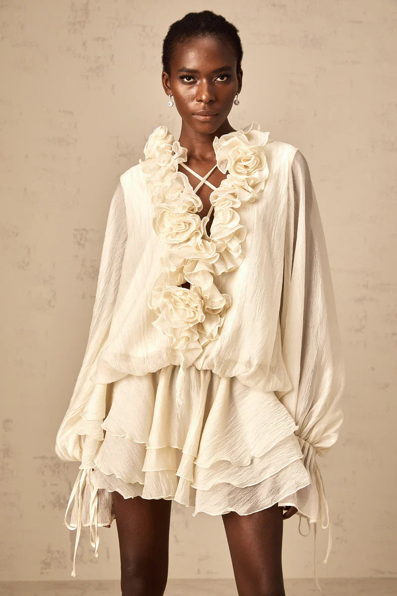 Soft, flowy and a touch romantic, this ivory ruffle dress is just what you need to channel your inner French girl vibes. The playful ruffles along the neckline are reminiscent of springtime flower petals, while the airy layers and puff sleeves give off that effortless, but I look amazing feeling.
