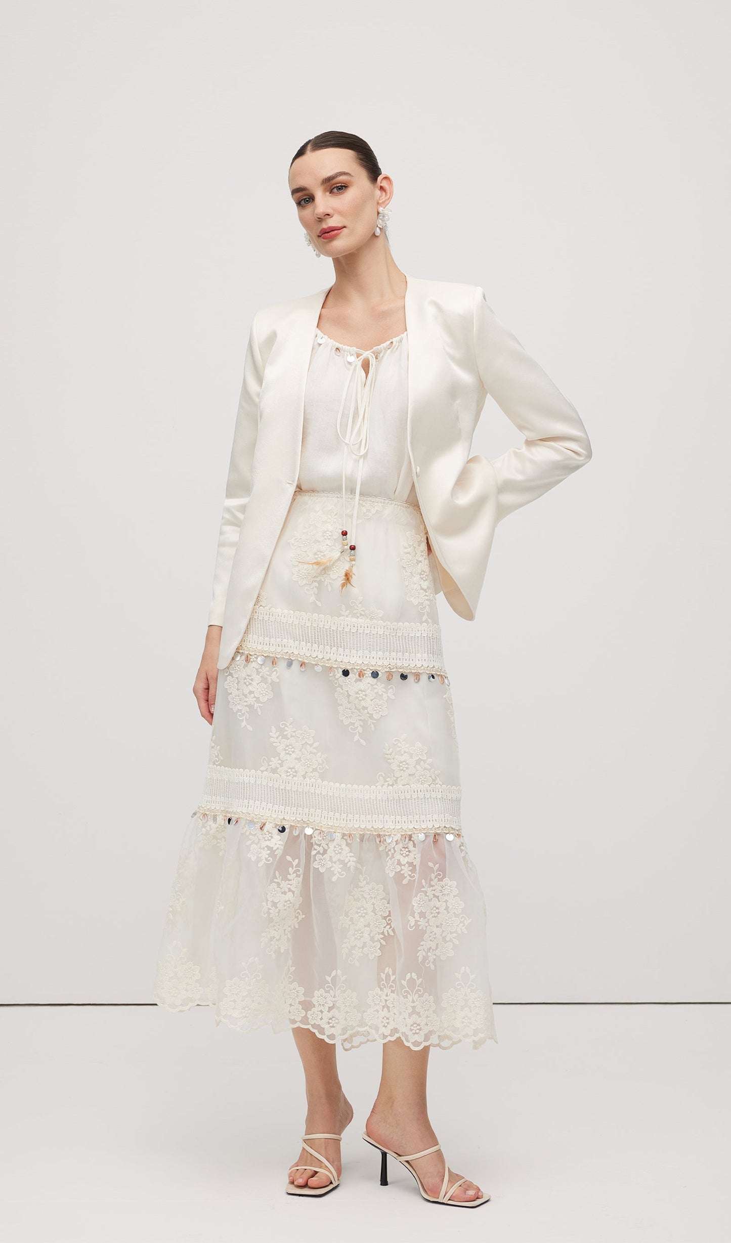 This Lace Embroidery Bohemian Midi Skirt combines delicate lace embroidery with a flowy bohemian style. The intricate design adds a touch of elegance and the midi length offers versatility for any occasion. Elevate your wardrobe with this expertly crafted and stylish skirt.