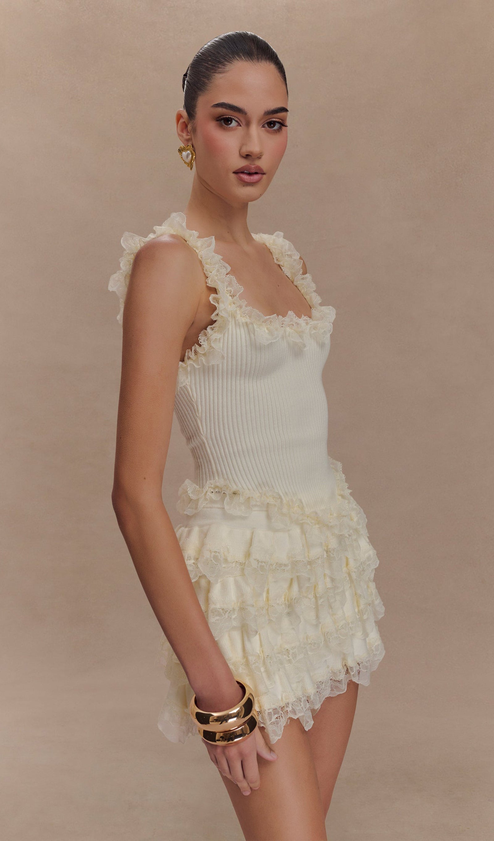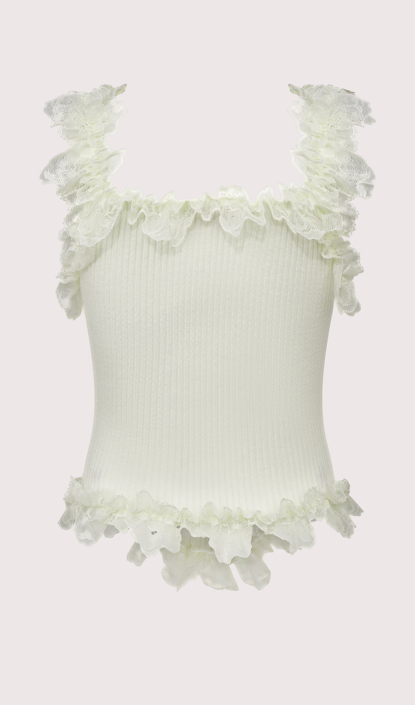 - Lace ruffle straps & hem
