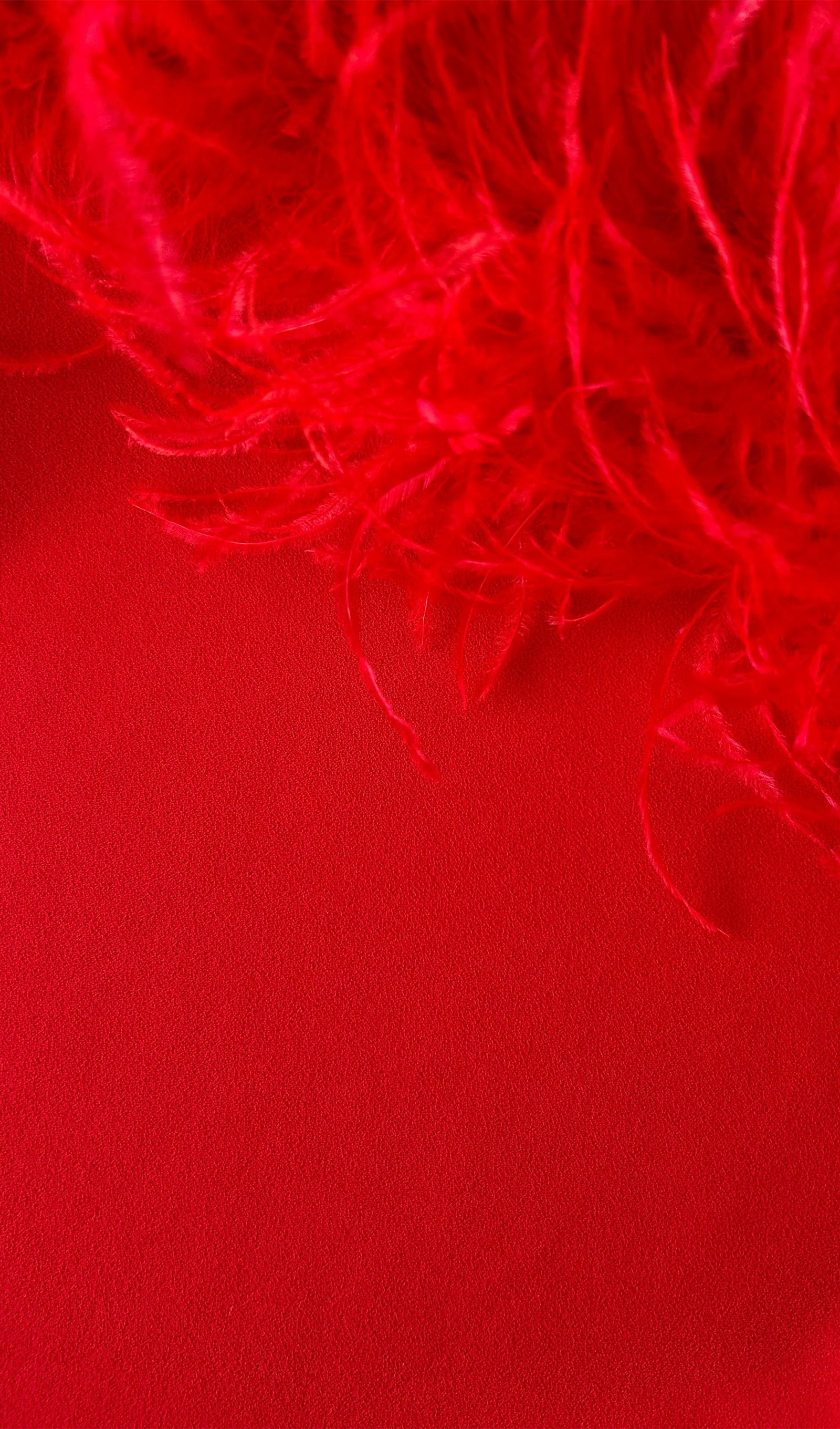 All of the feathers are 100% ostrich feathers. They are produced with full commitment to the framework of sustainable production and are supplied from certified farms. Store in a cool and dry environment. Since the feathers are not synthetic, it is expected that some amount of shedding will occur. All of the feathers are hand stitched to the dress. Before handing over the dress for dry cleaning, the feathers should be removed and sewn again after the dress has been cleaned.