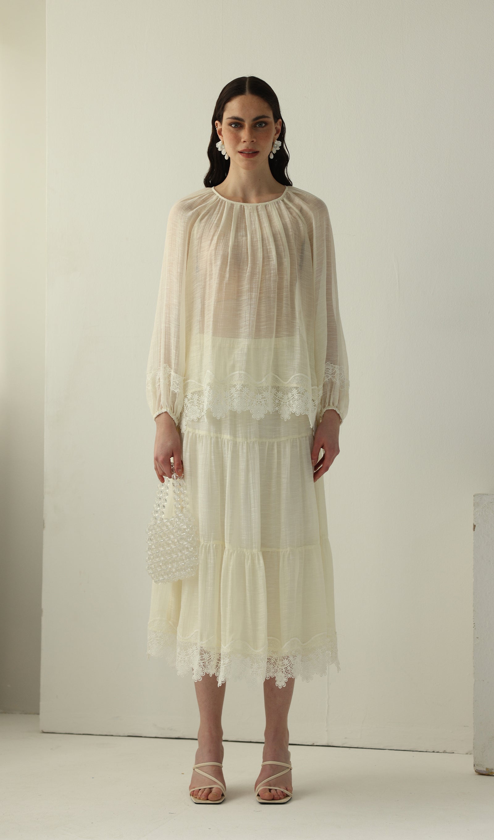 Long Sleeved Lace Panel Midi Skirt