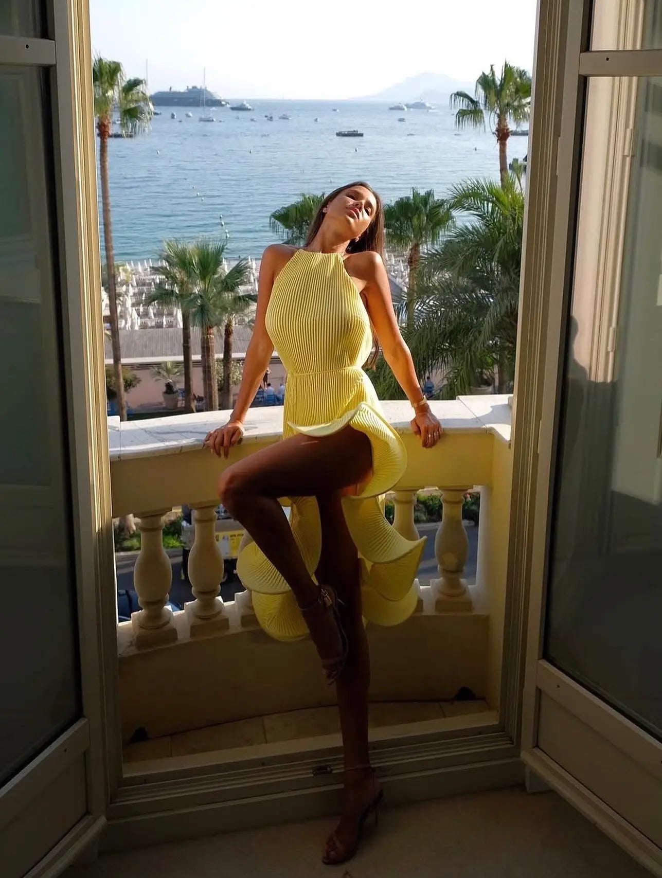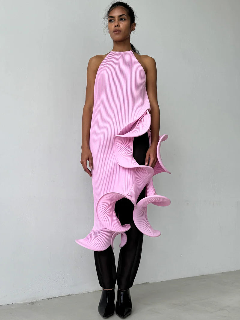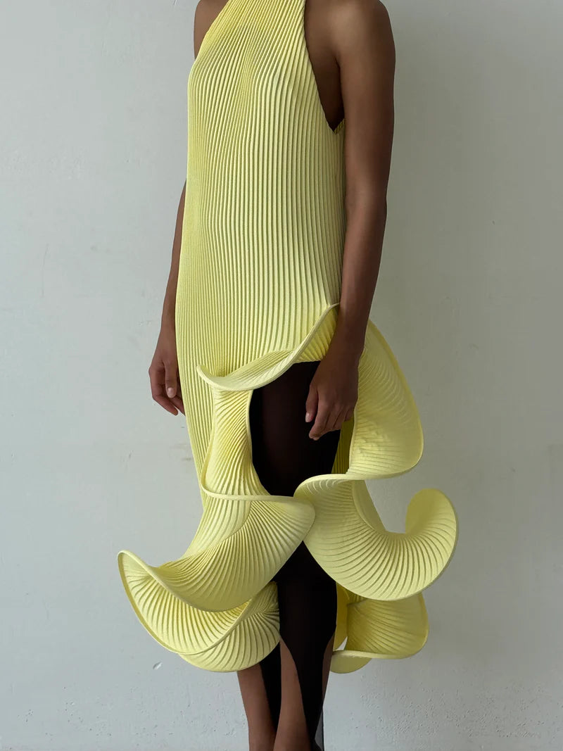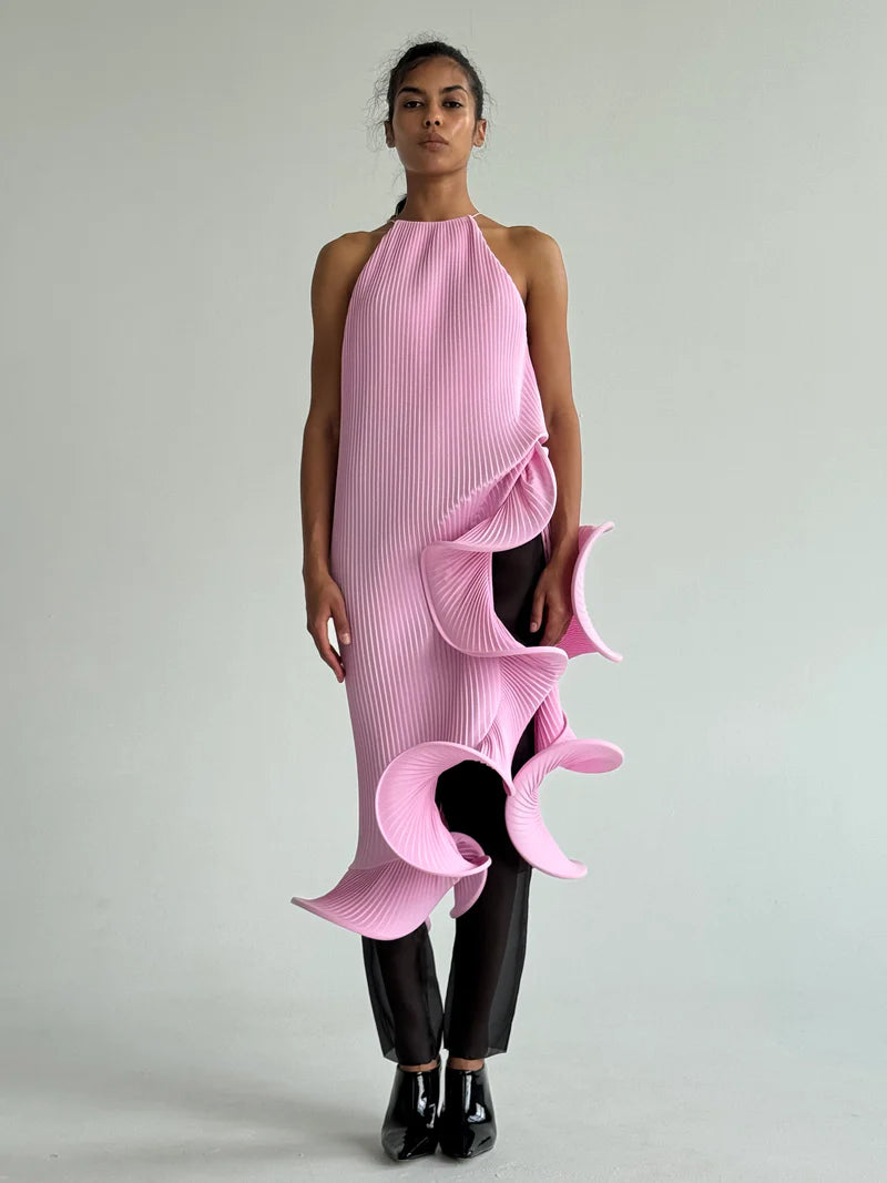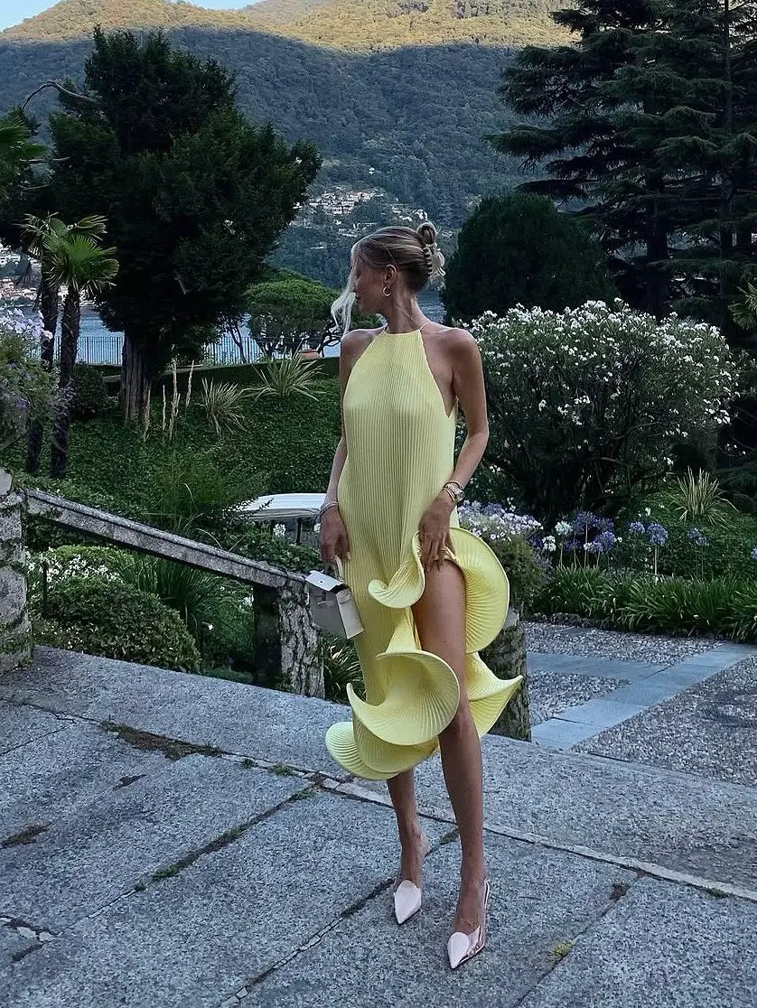Halter Neck Spaghetti Strap Backless Chiffon Dress