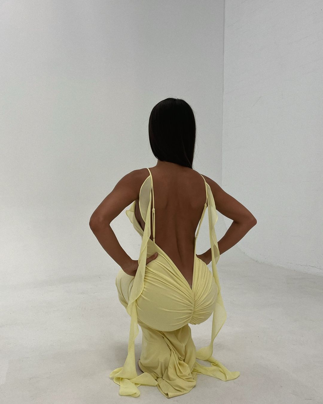 Halter Neck Spaghetti Strap Backless Chiffon Dress