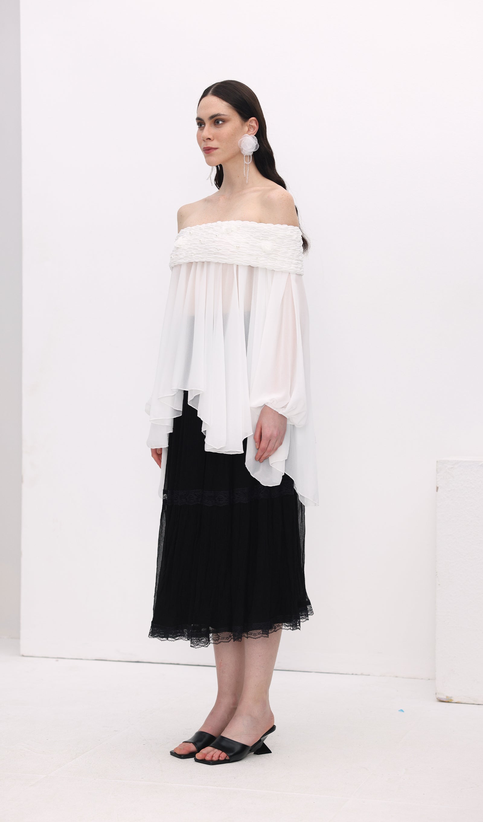 This versatile Off Shoulder Mesh Mini Dress can be worn in not one, but two ways - as a stylish top or as a chic skirt. With its off shoulder design and mesh fabric, this dress is a must-have for any fashion-forward individual. Upgrade your wardrobe and showcase your style with this unique and multi-functional piece.