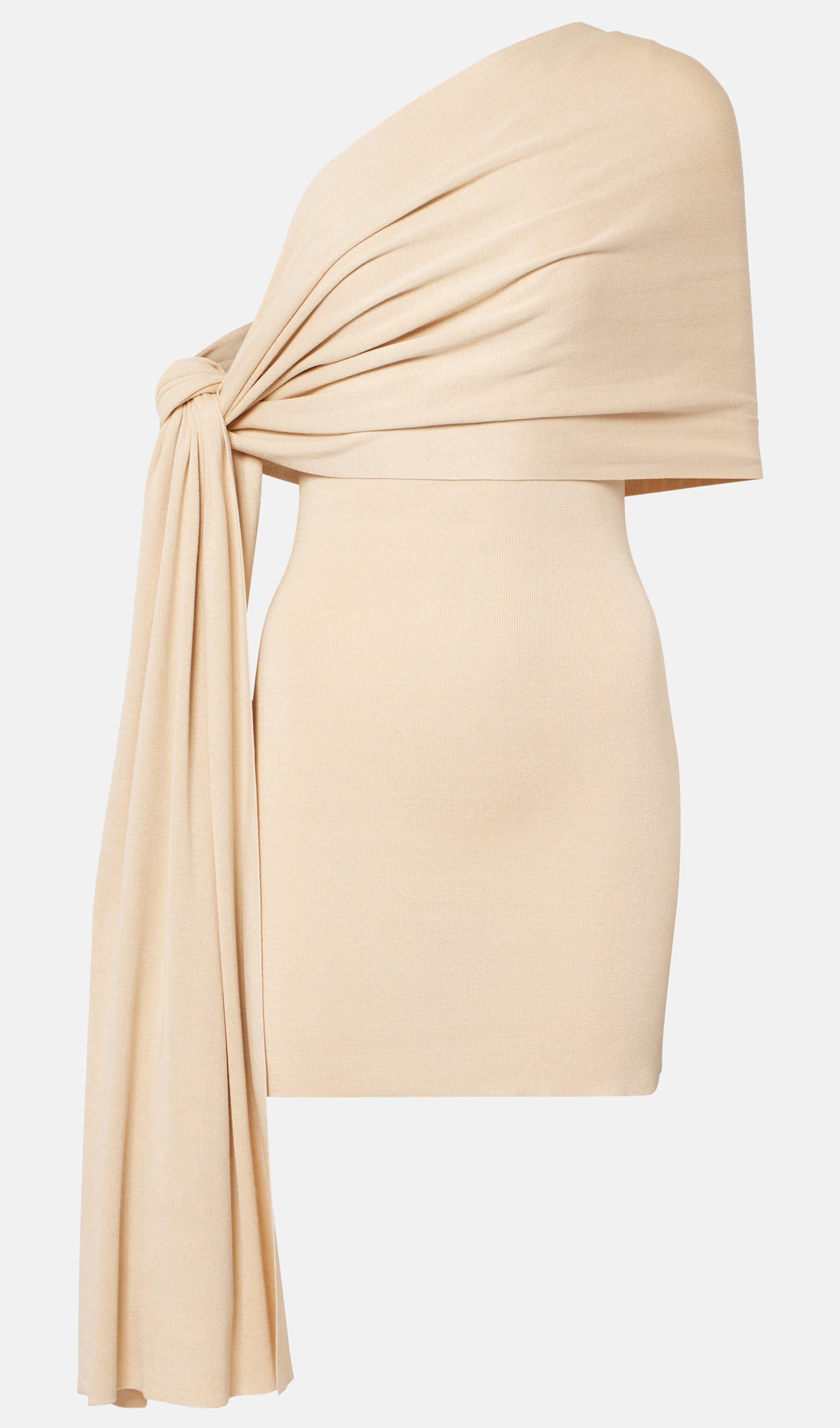 Effortlessly chic, this one shoulder lace up mini dress boasts a flattering jersey material and a stylish cape overlay. Perfect for any occasion, the one shoulder cut adds a touch of sophistication while the lace up detail adds a hint of edgy charm. Elevate your wardrobe with this versatile dress.