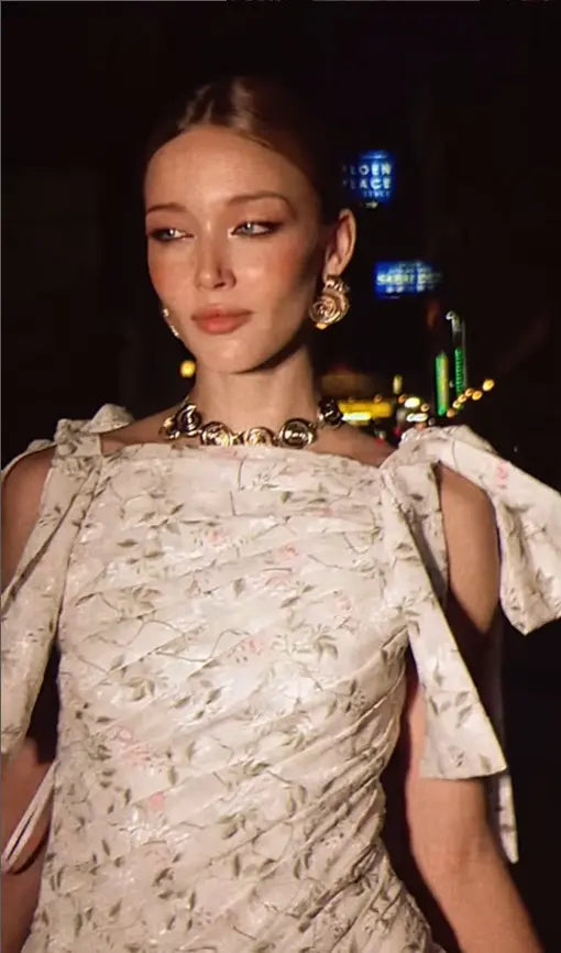 The dress with bow-knot shoulder straps.