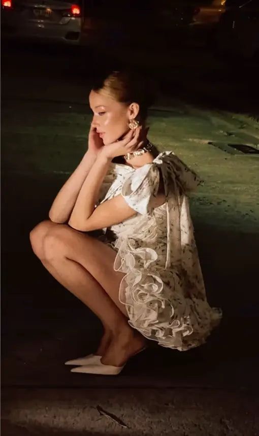 Printed Shoulder Bowknot Mini Dress