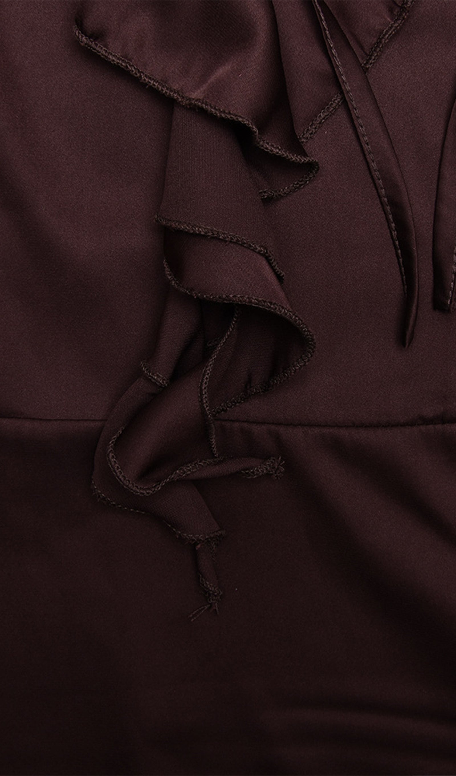 This Ruffled Satin Mini Dress features a beautiful lace-up neckline and adjustable fit for a comfortable yet elegant look. Made with high-quality satin, this dress is perfect for any occasion. Enhance your style with this must-have piece.