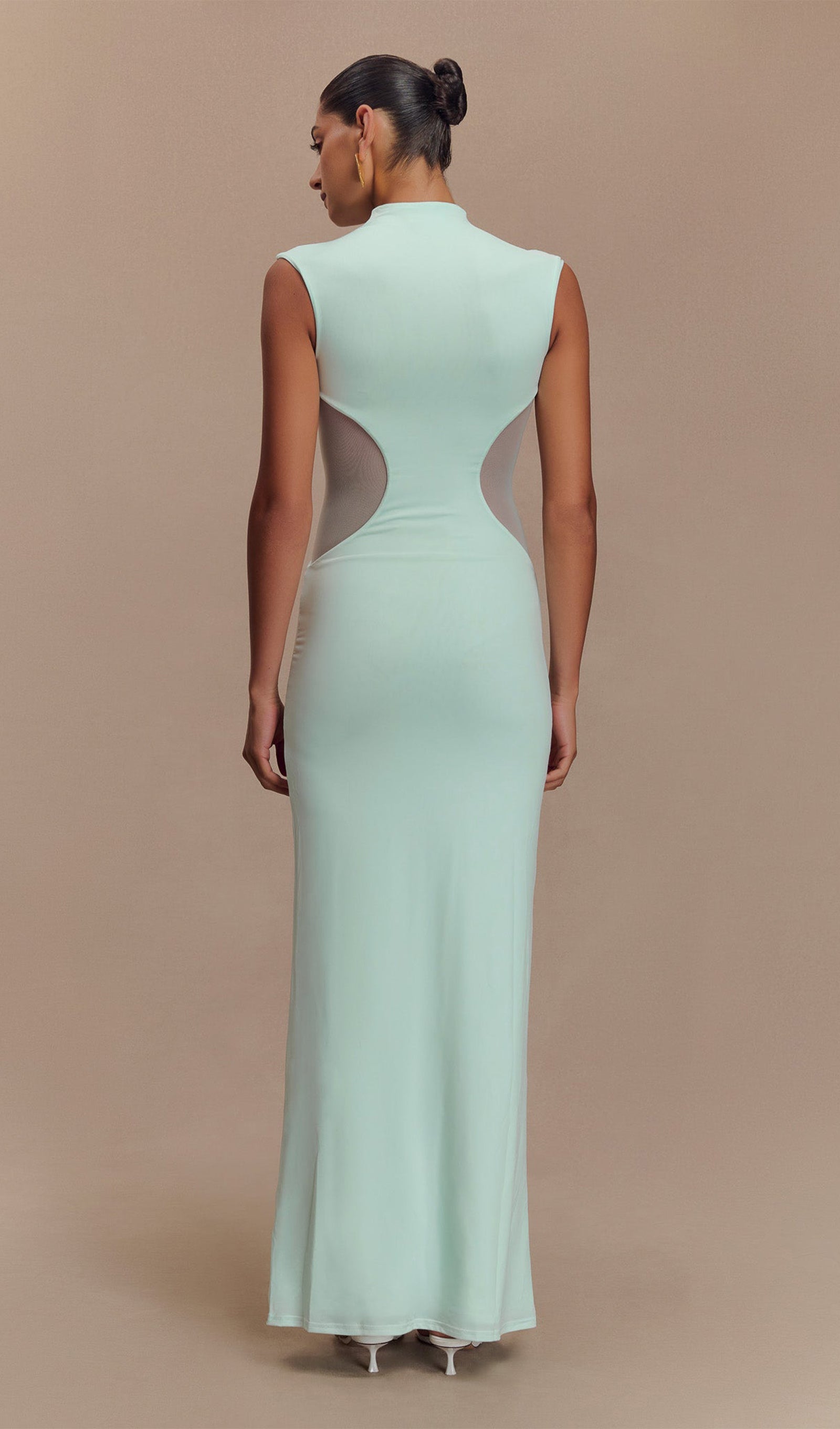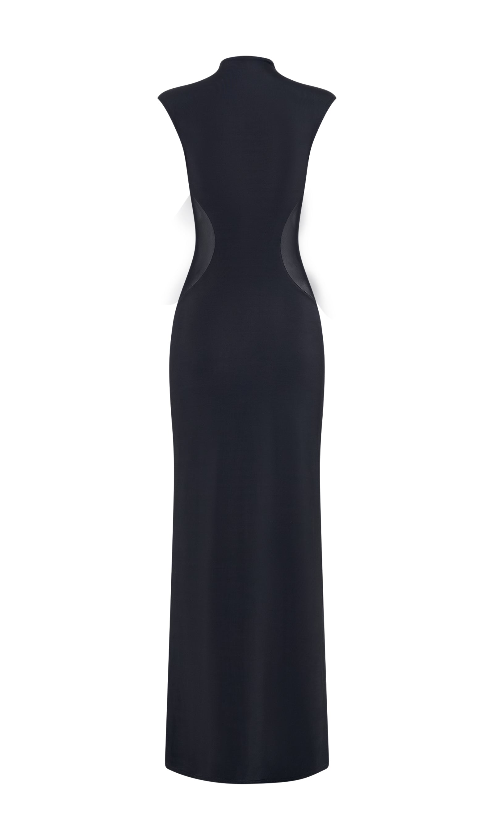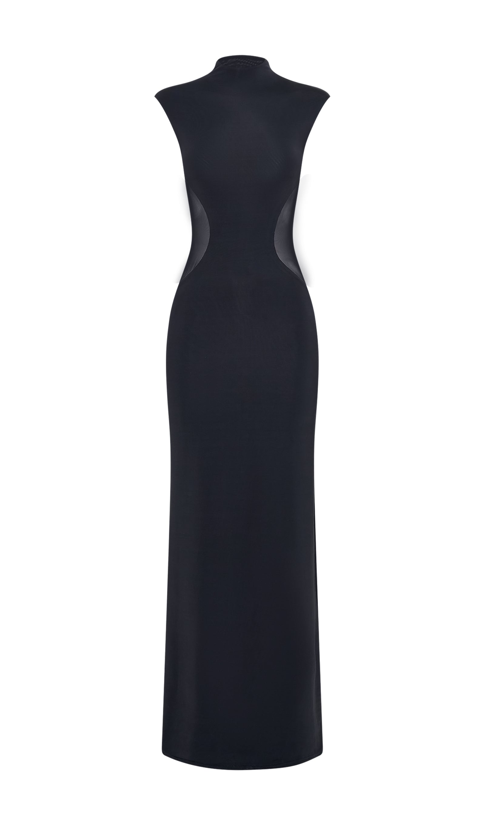 Embrace elegance with the Slinky and Mesh Maxi Dress, a stunning blend of sophistication and modern design. Featuring a graceful grown-on neckline and wide shoulder shape, this bodycon dress hugs your curves and flows into a refined maxi length. Contrast hash panels at the waist cinch your figure for an hourglass silhouette, adding visual intrigue. Fully lined for comfort, the dress is perfect for formal events, nights out, or special celebrations. Elevate your wardrobe with this versatile piece, where contemporary style meets timeless appeal.