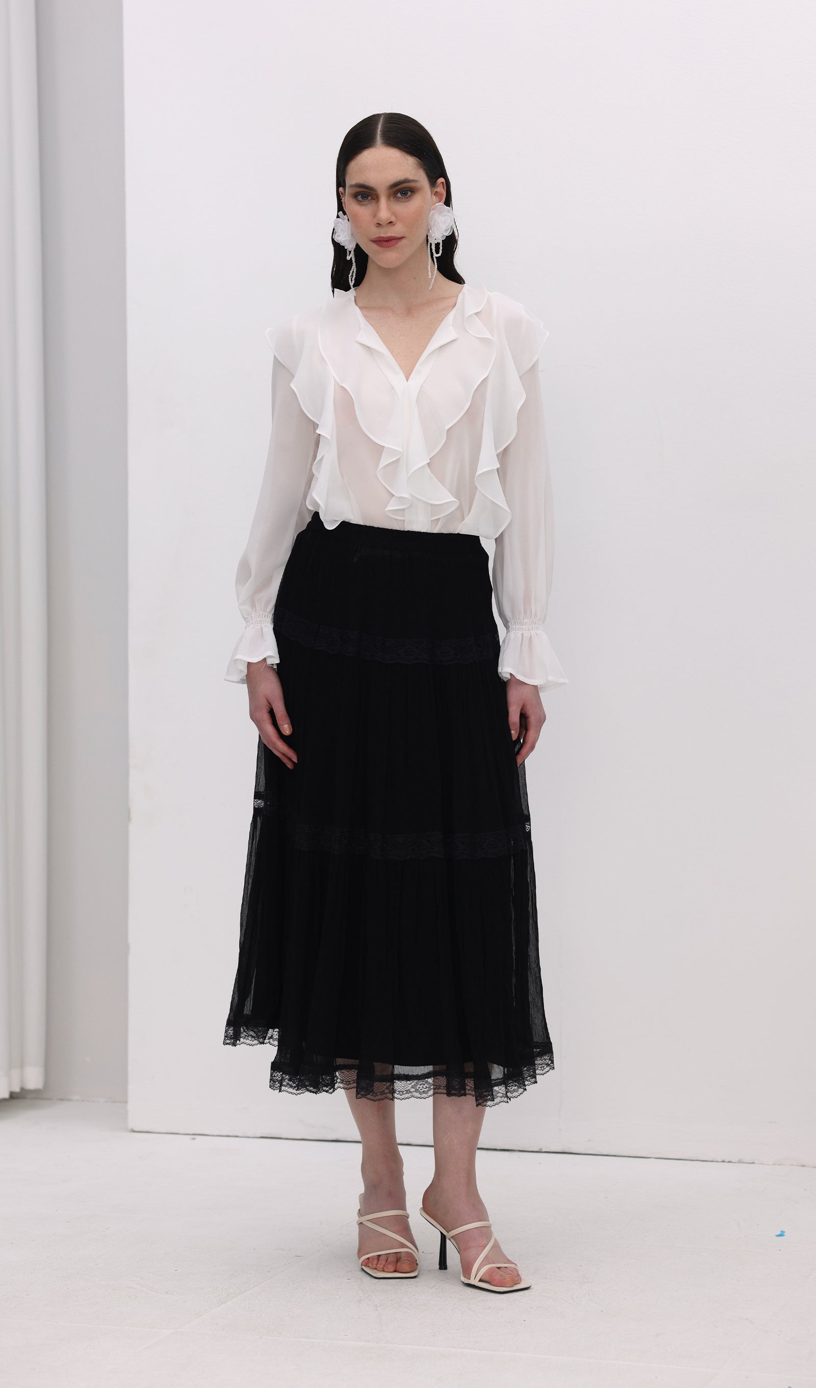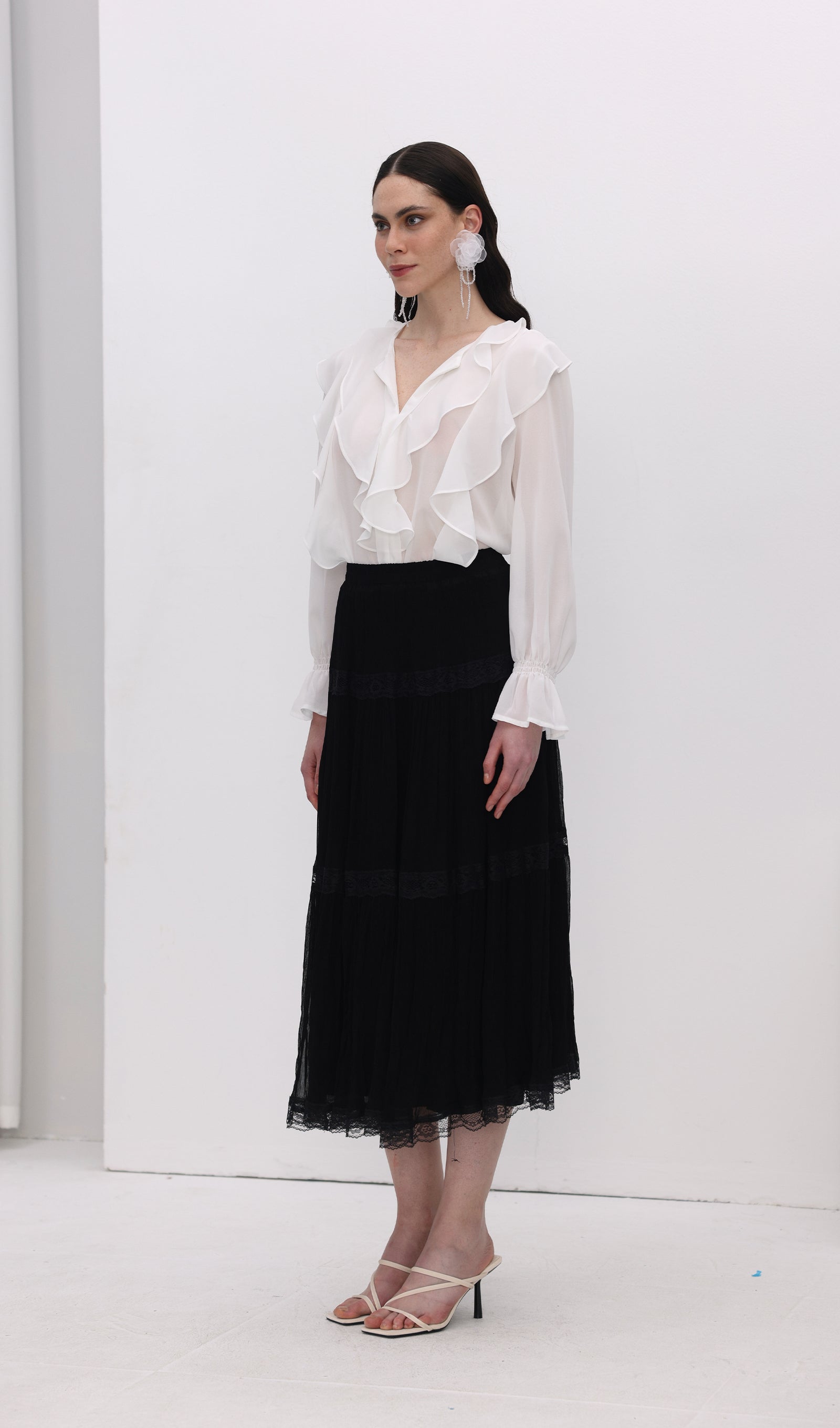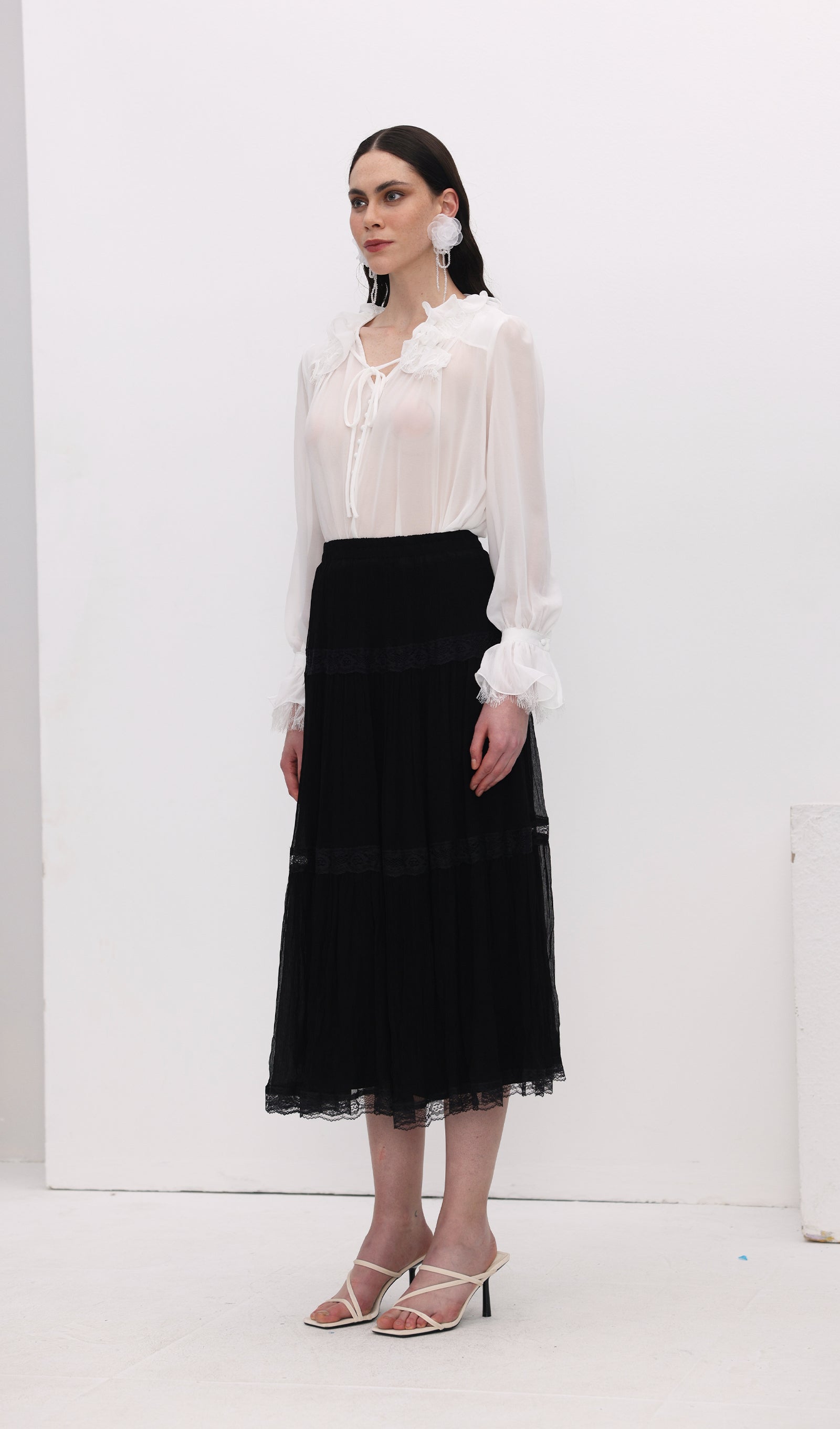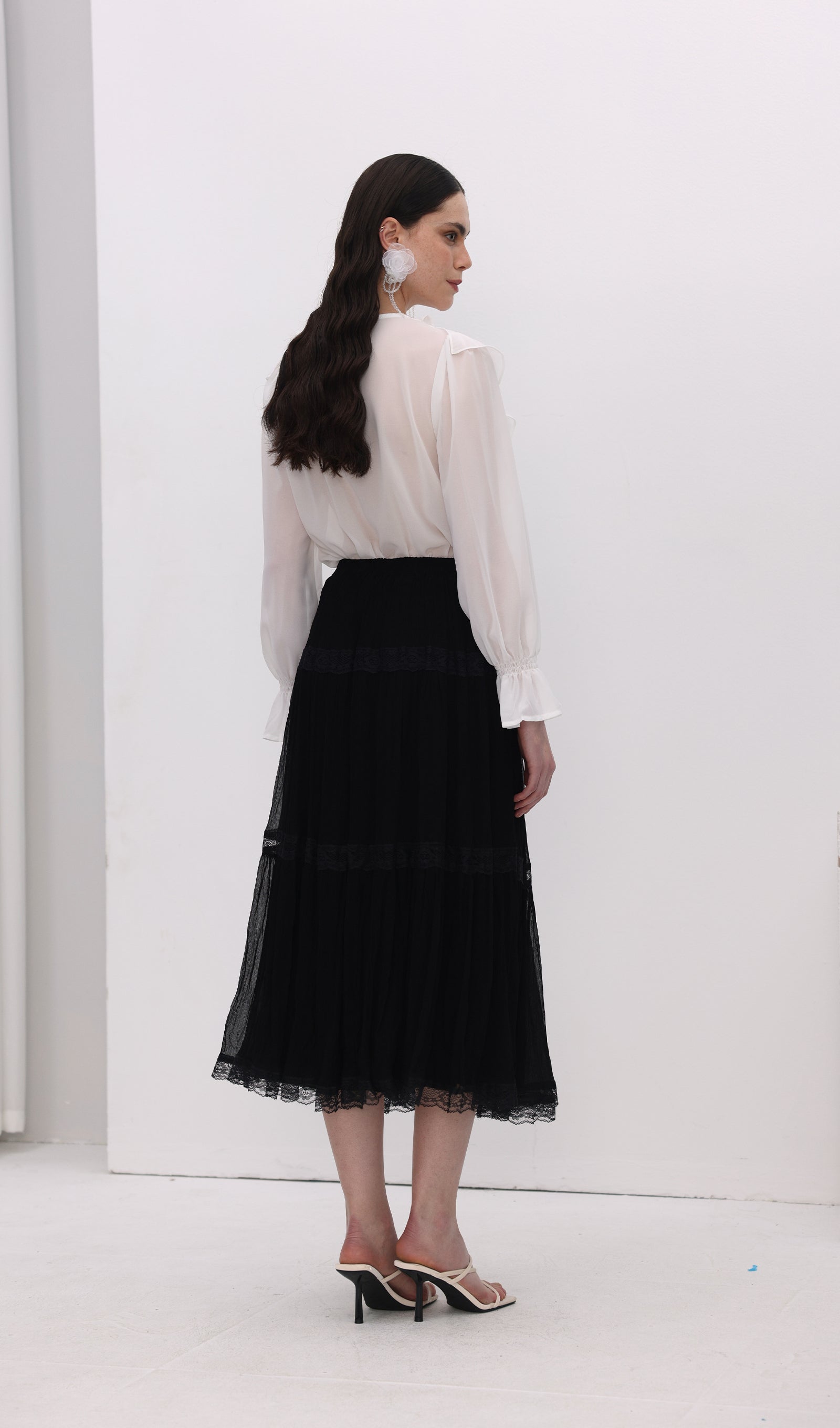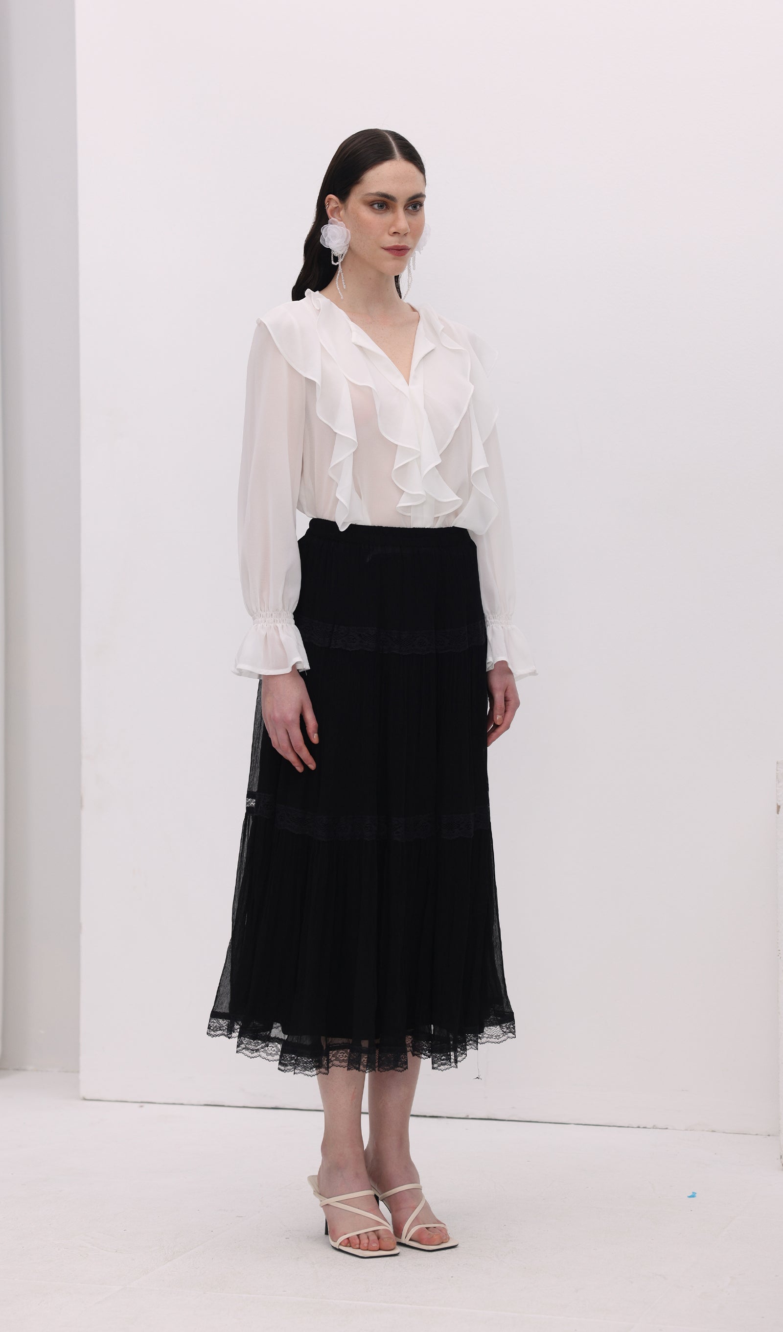 Expertly crafted with a classic pleated design, this solid midi skirt is a must-have for any wardrobe. Made with high-quality materials, it offers both comfort and style for any occasion. Elevate your look and show off your fashion expertise with this versatile and timeless piece.