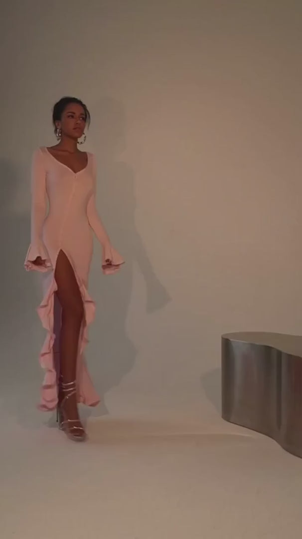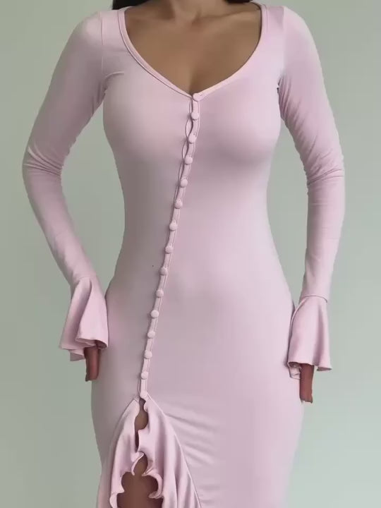 Sweetheart Neckline Long Sleeves Ruffled Cuffs Dress