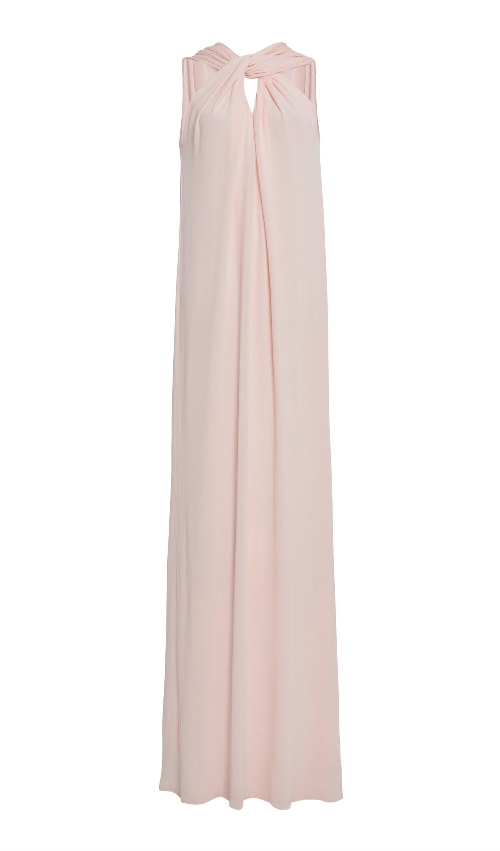 Crafted from fluid, airy georgette, this goddess gown is simply detailed with a twisted neckline.